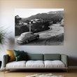 1950s Austin Car Driving Up The Hollywood Hills With Hollywood Sign In Distance Los Angeles Ca USA Canvas Wall Art - Vintage Images