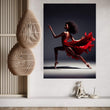 African Black Woman Ballerina in Red Dress Canvas Wall Art Home Decor