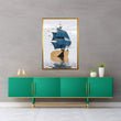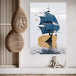 Blue Gold Boat, Ship Landscape, Birds, Sea Canvas Wall Art Print