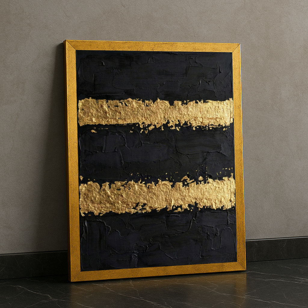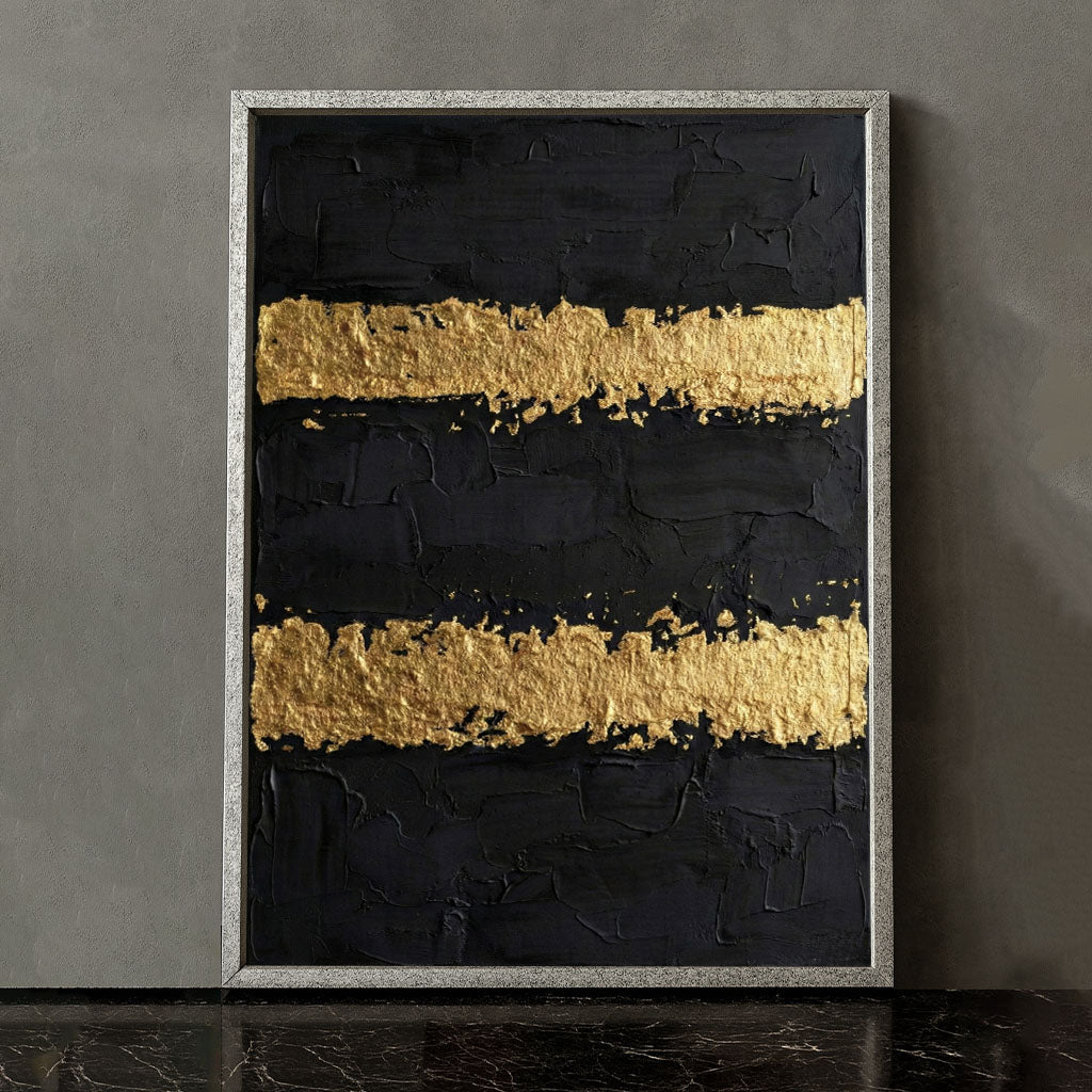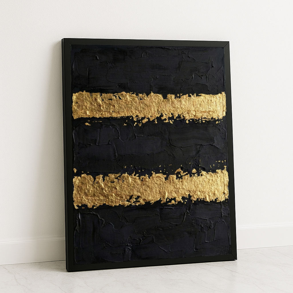 Bold Black And Gold Textured Stripes Canvas Wall Art