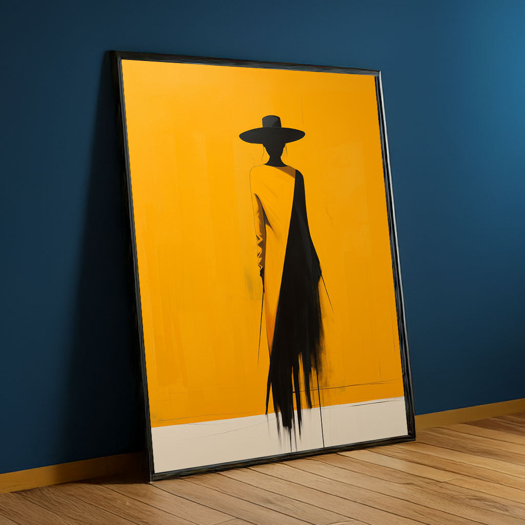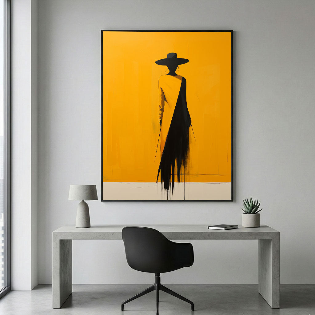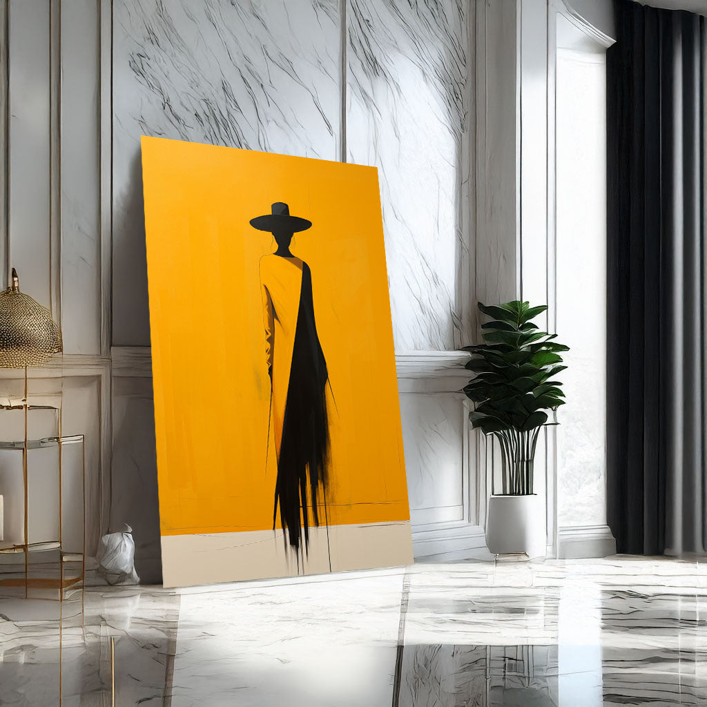 Bold Yellow And Black Silhouette Woman Canvas Wall Art