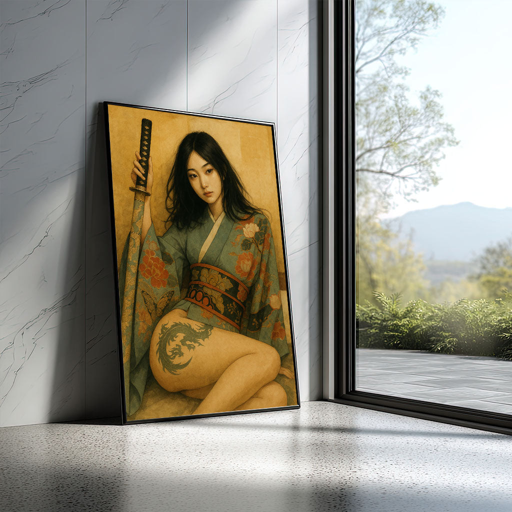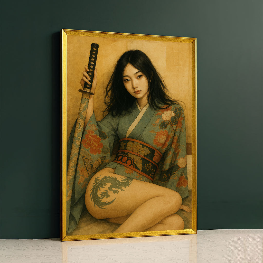 Captivating Samurai Woman With Dragon Tattoo Canvas Wall Art
