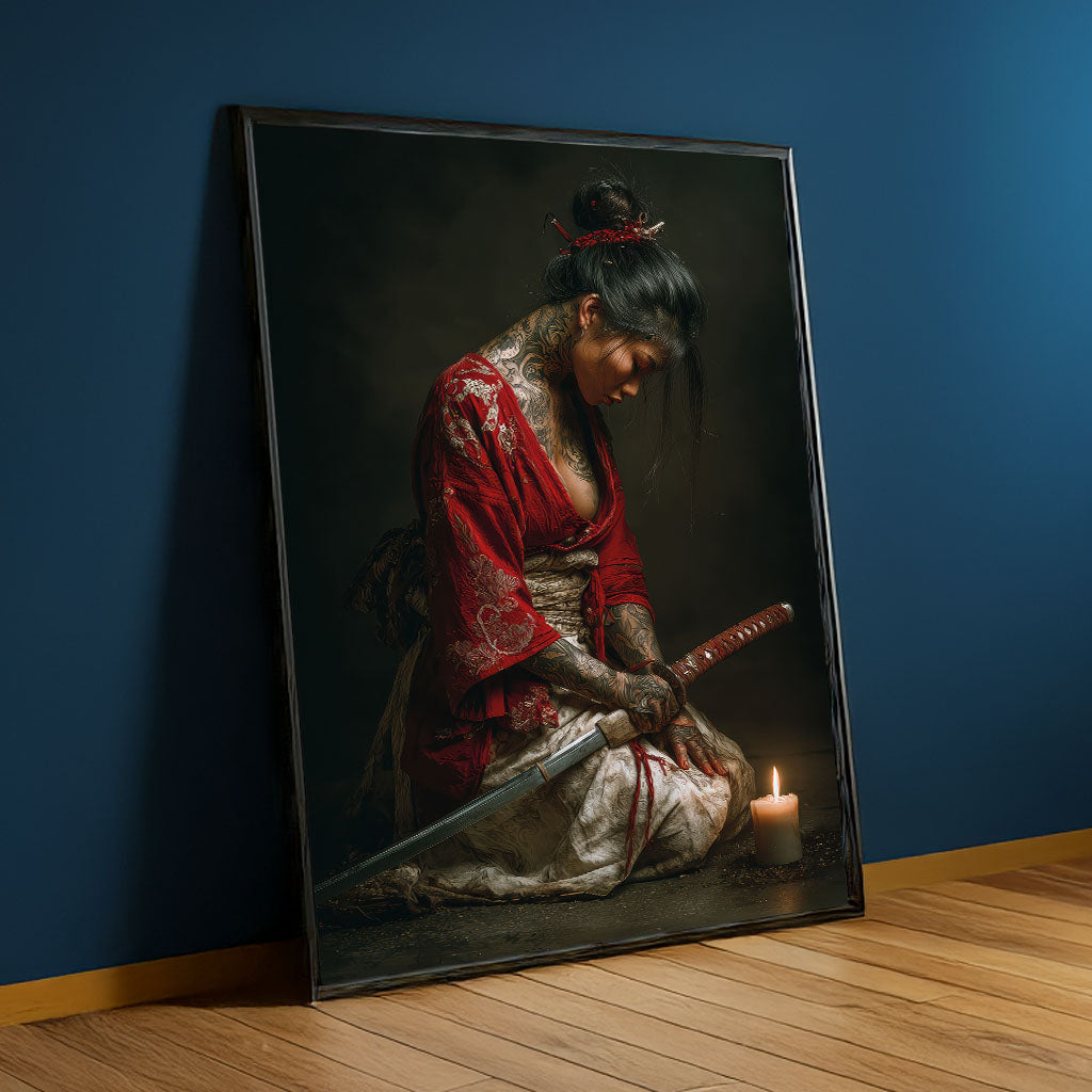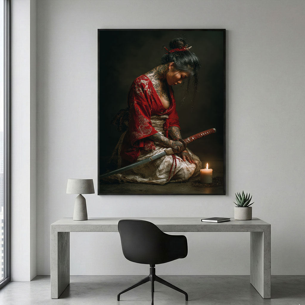 Captivating Samurai Woman With Tattoos Canvas Wall Art
