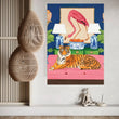 Chinoiserie Tiger In The Living Room With Flamingo Ginger Jar And Fiddle Leaf Fig Canvas Wall Art - Green Orchid Boutique