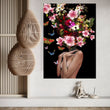 Woman and Colorful Rose Canvas Art, Blooming Woman Head, Floral Woman Art