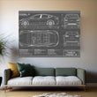 Tesla Model 3 (Long Range RWD) Black Canvas Wall Art - Action Blueprints