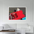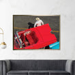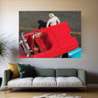 Cuba, Havana, Havana Vieja (Old Havana), red classic convertible and driver, viewed from above Canvas Wall Art