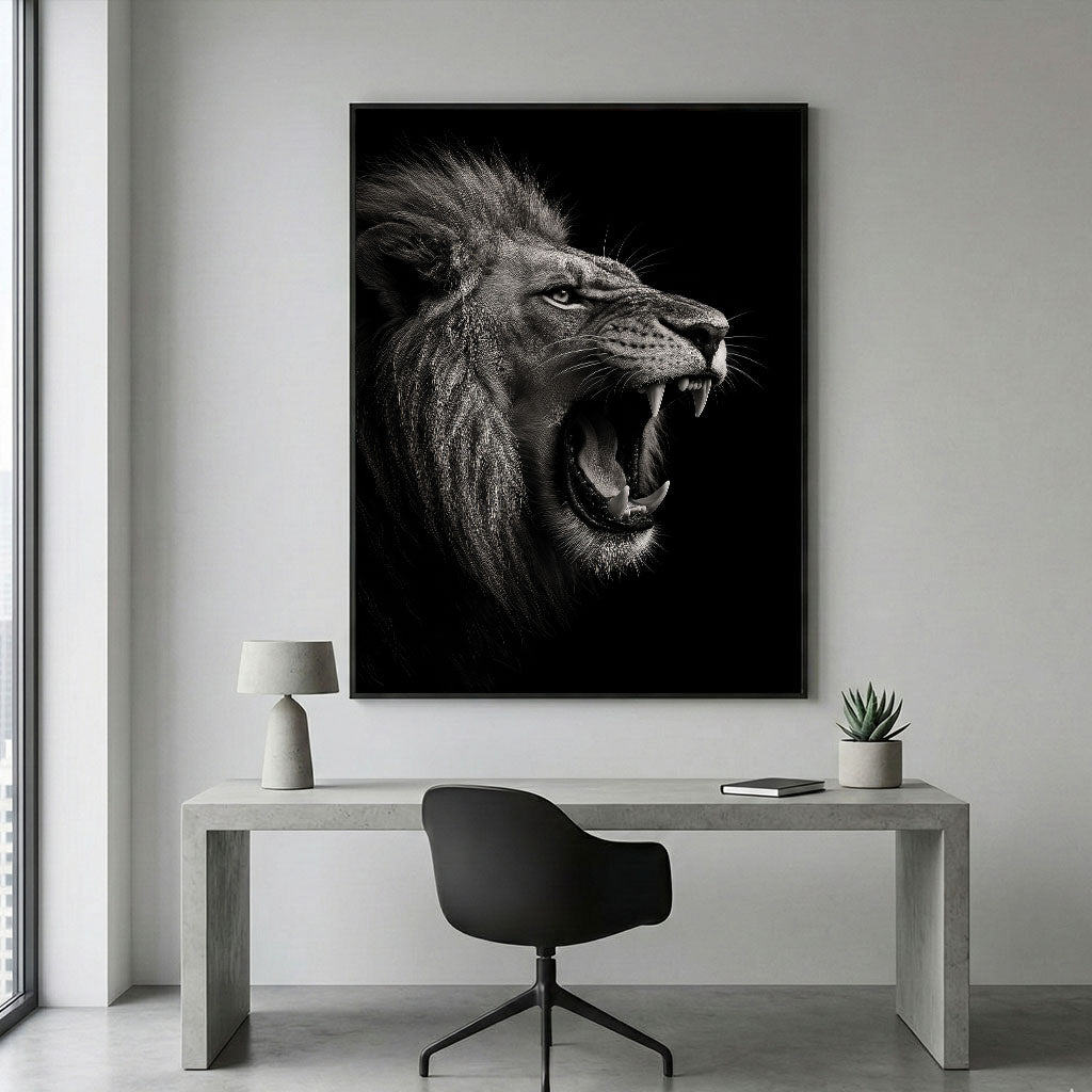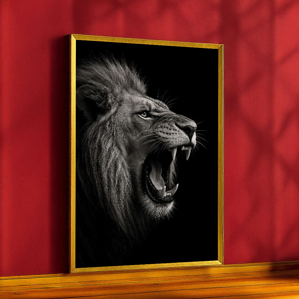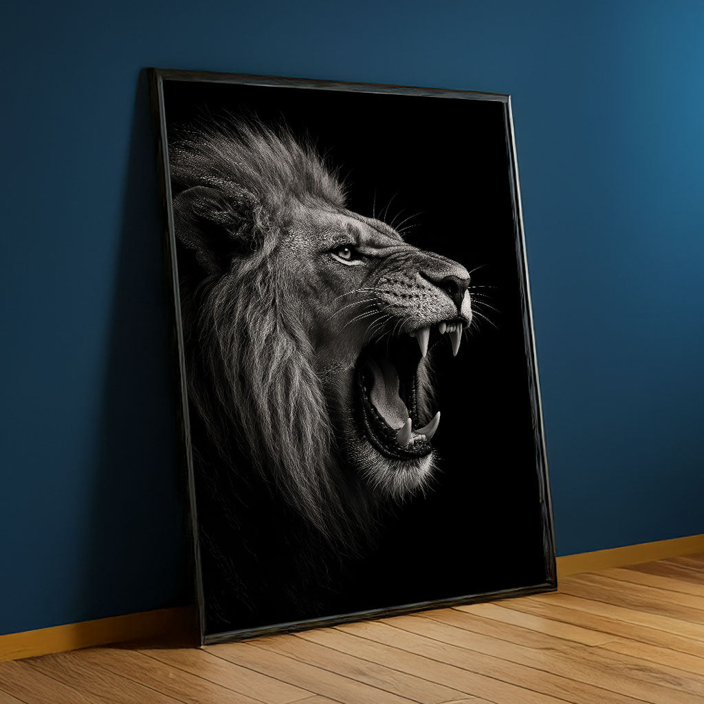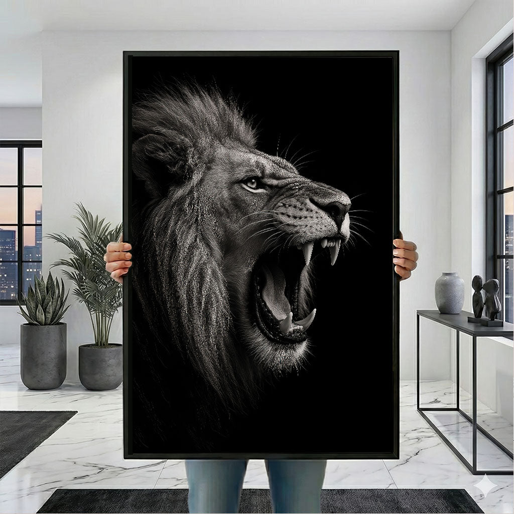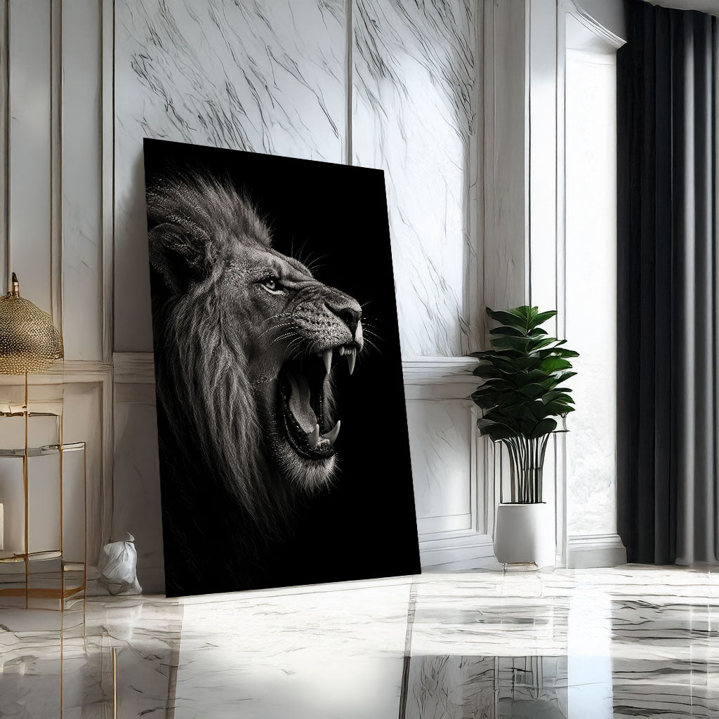 Dramatic Black And White Roaring Lion Canvas Wall Art