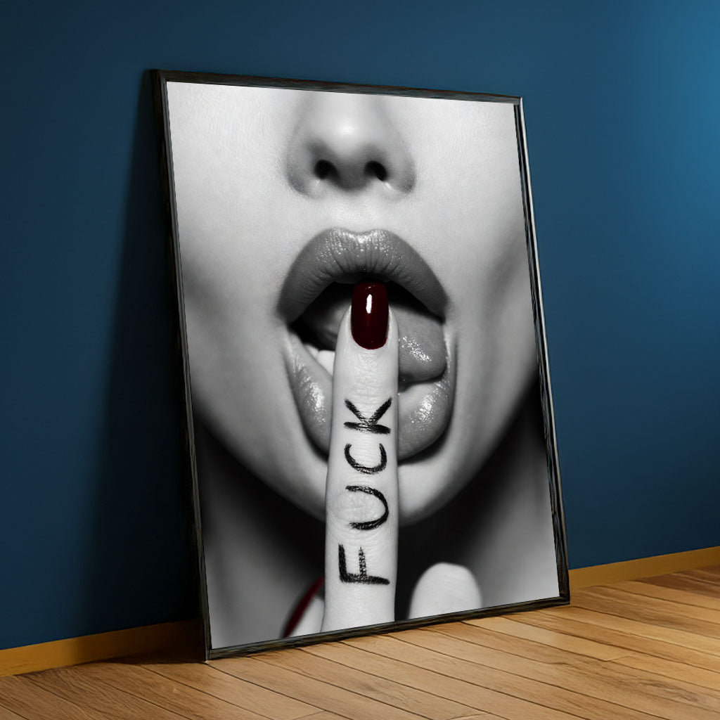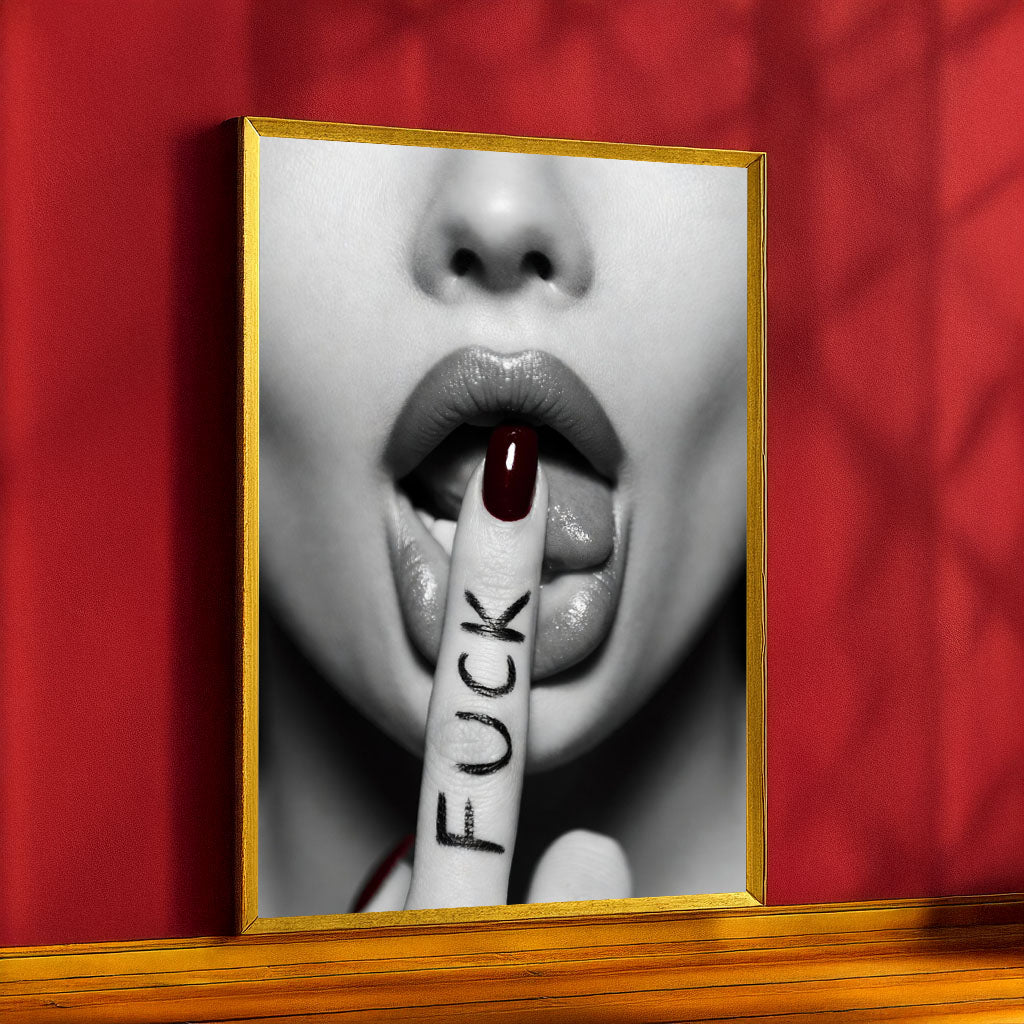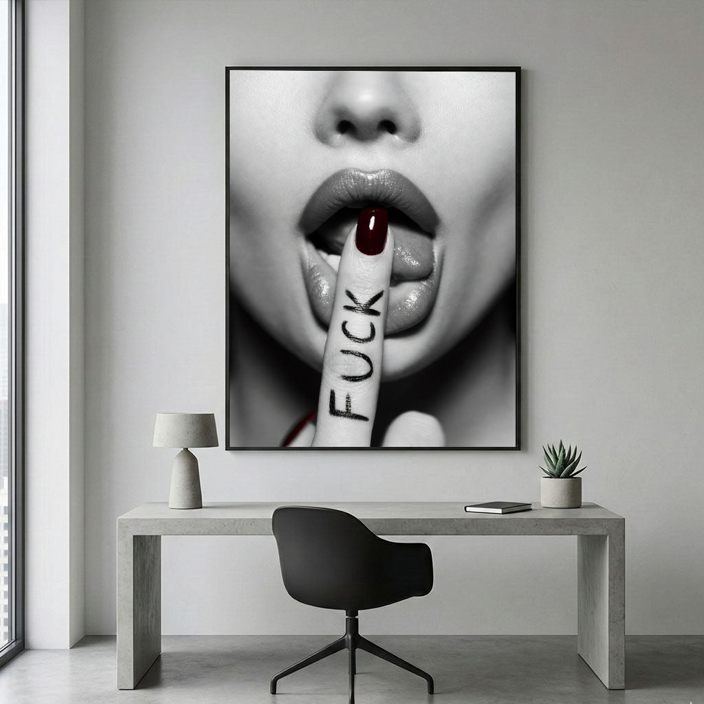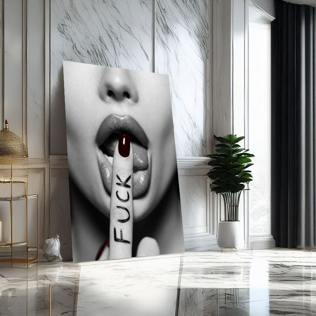Dramatic Black And White Woman With Red Lips Canvas Wall Art