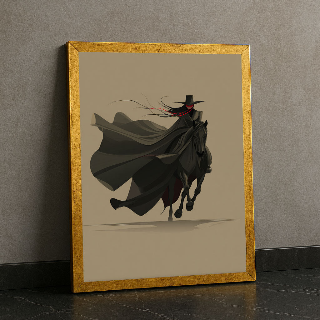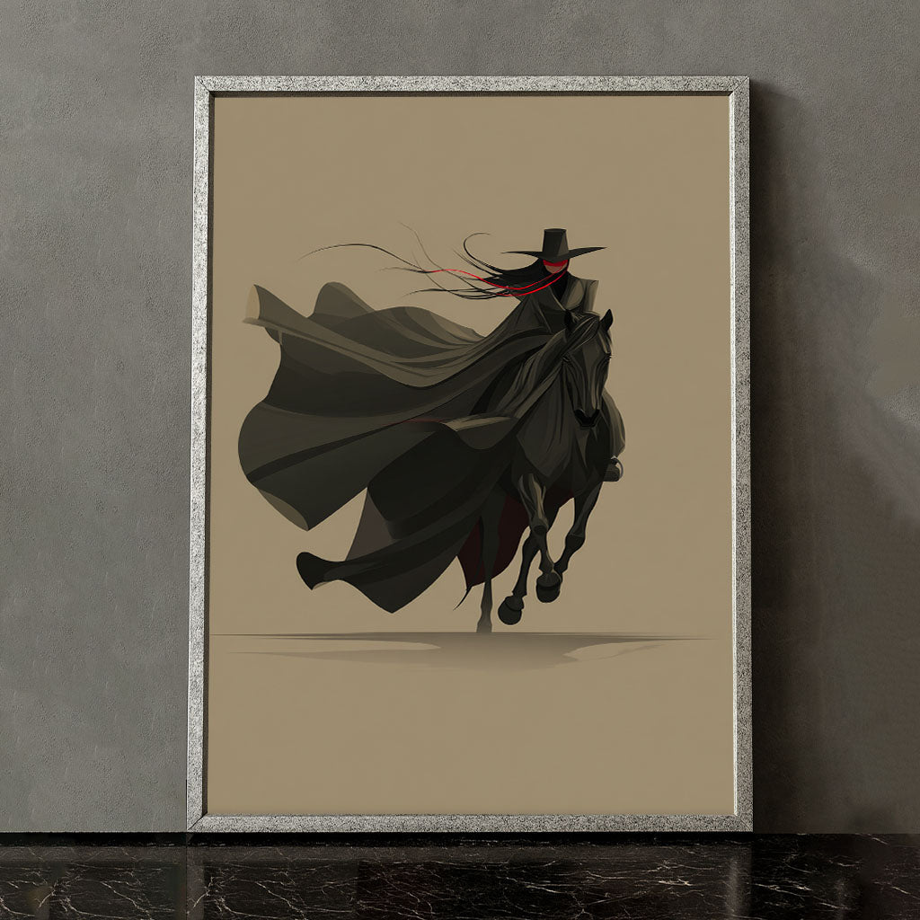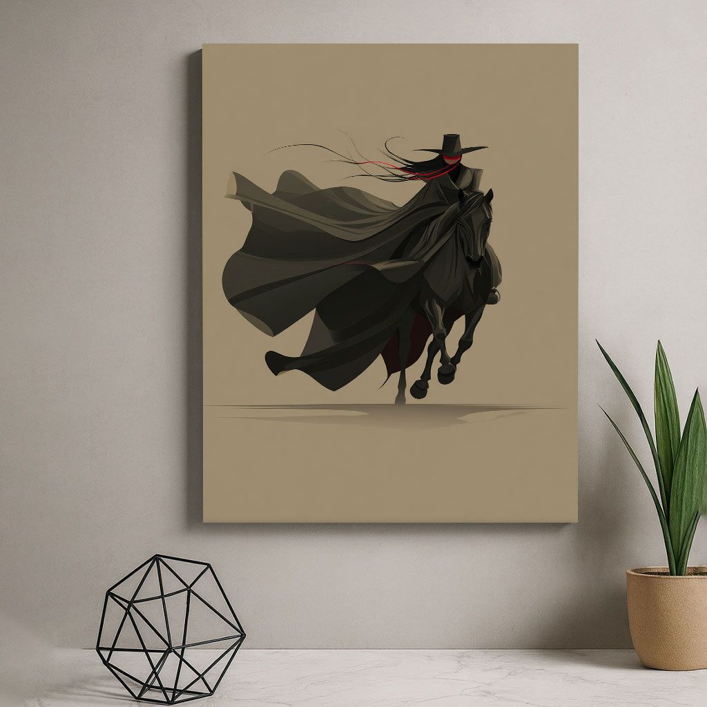 Dramatic Rider In Black Cloak On Horse Canvas Wall Art