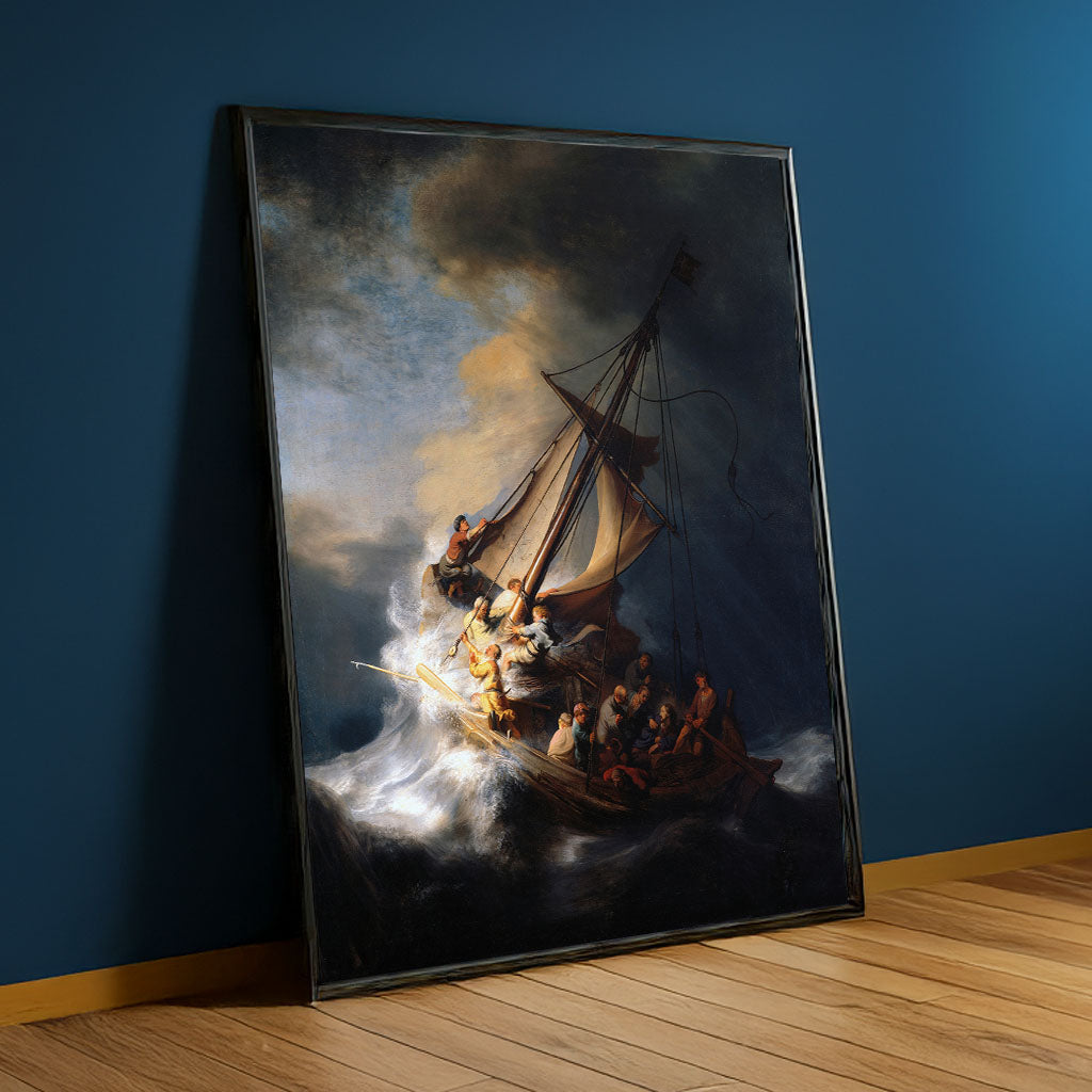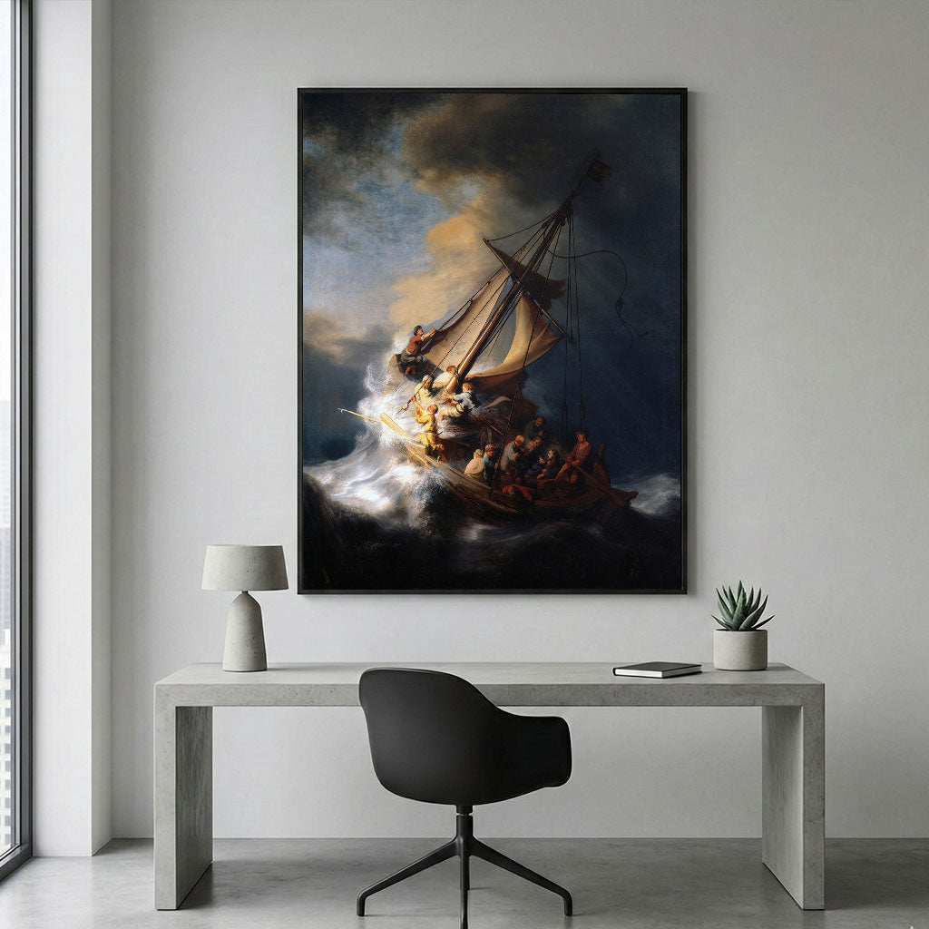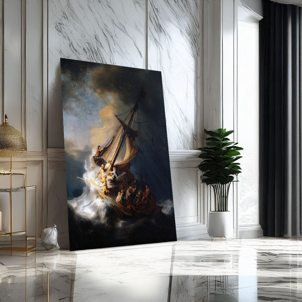 Dramatic Stormy Seas And Boat Canvas Wall Art
