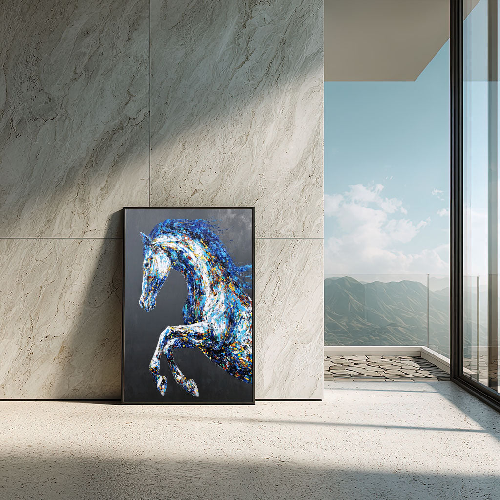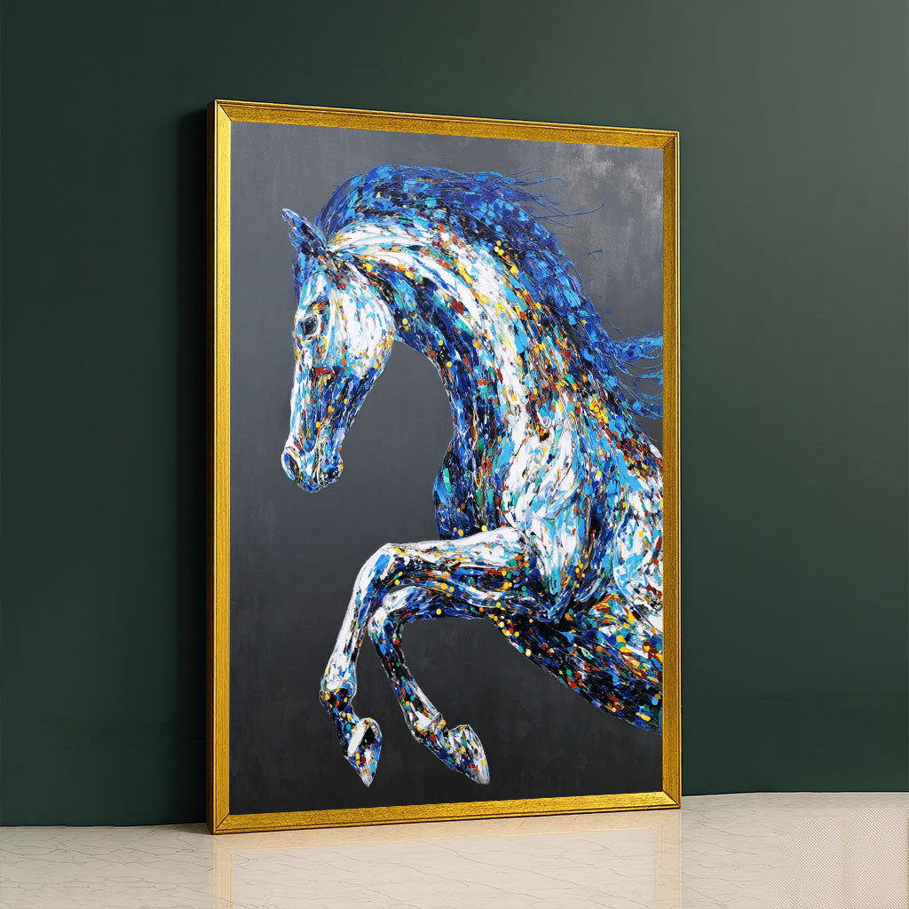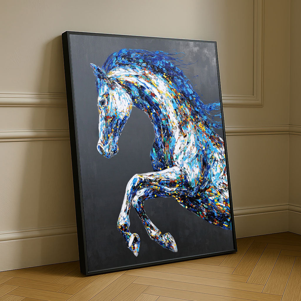Dynamic Blue And White Galloping Horse Canvas Wall Art