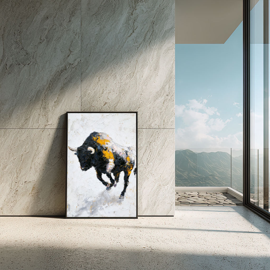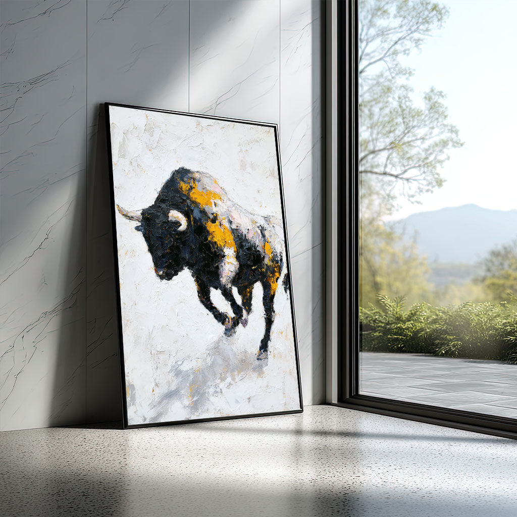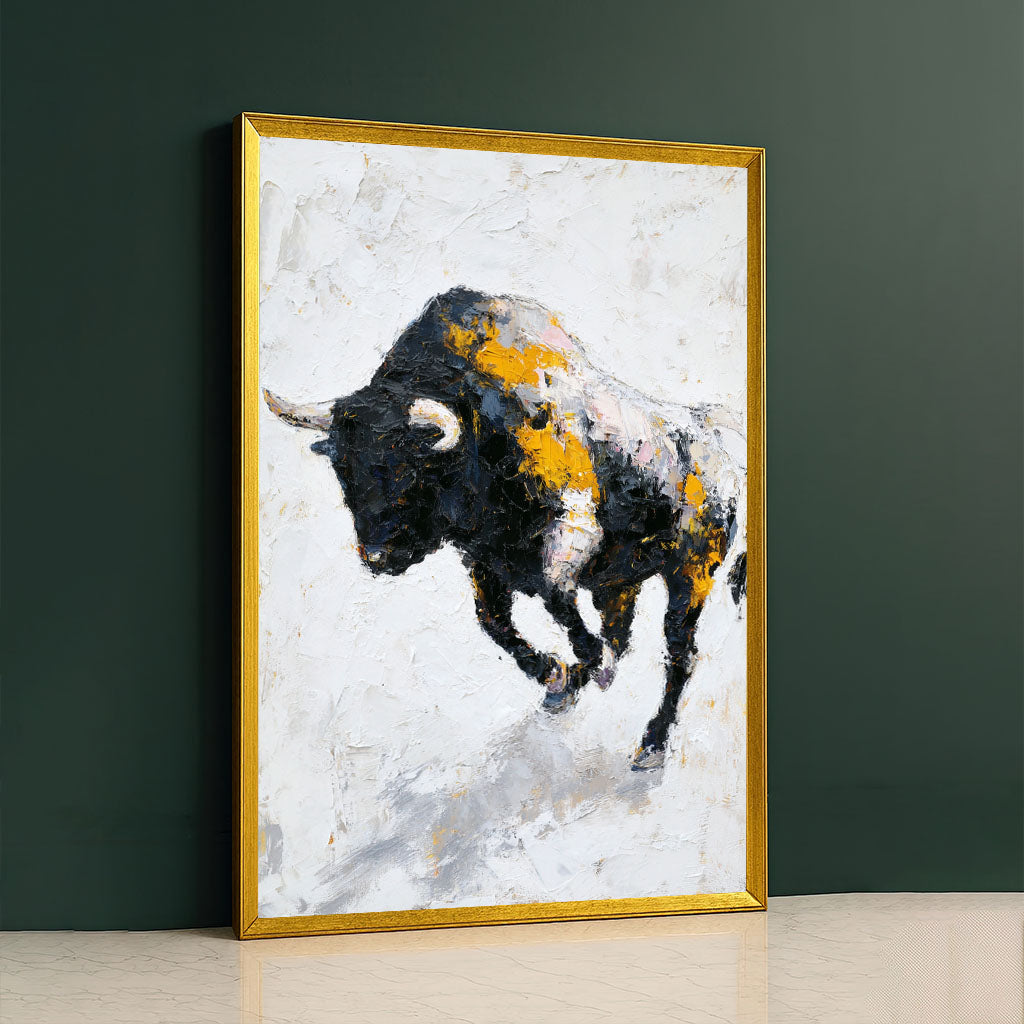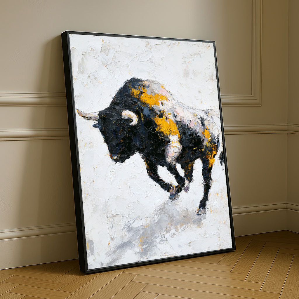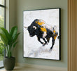 Dynamic Charging Bull In Yellow And Black Canvas Wall Art