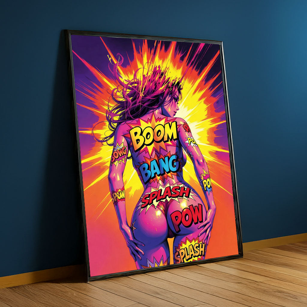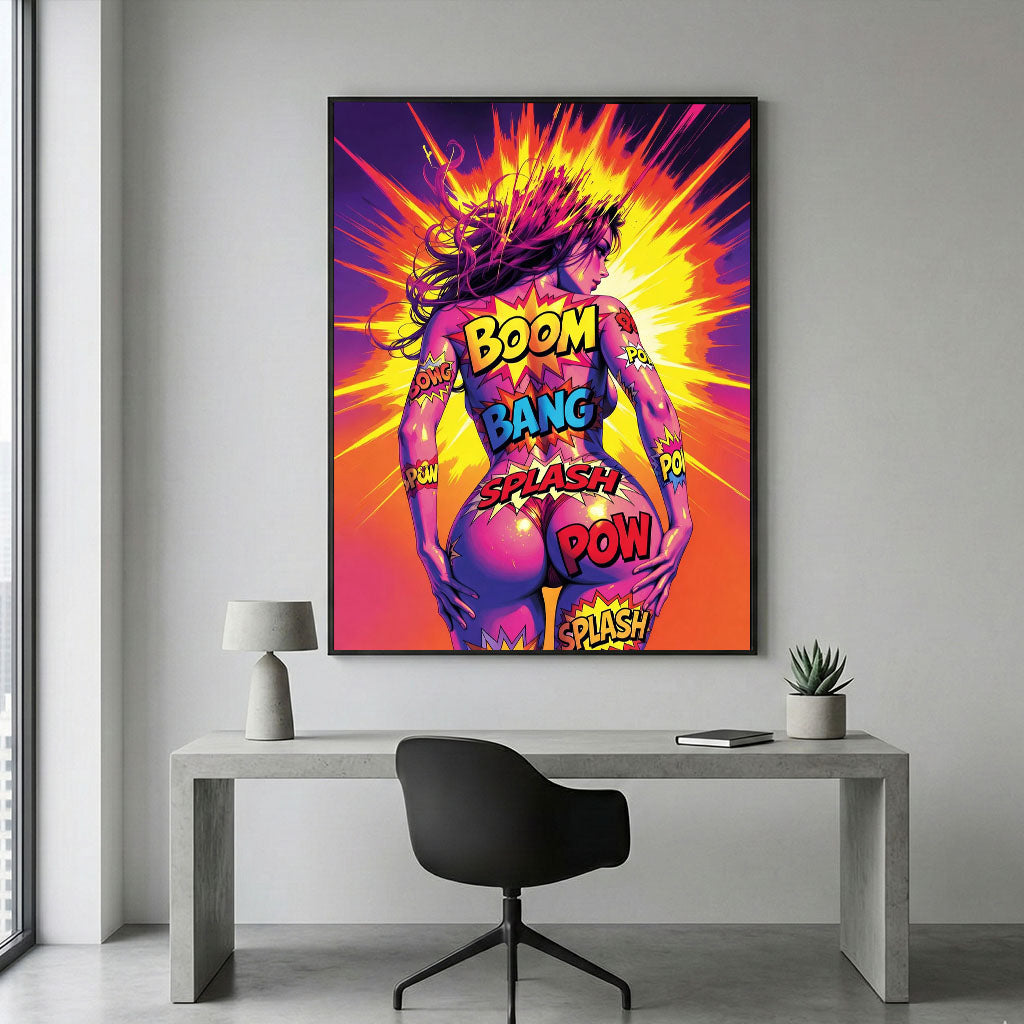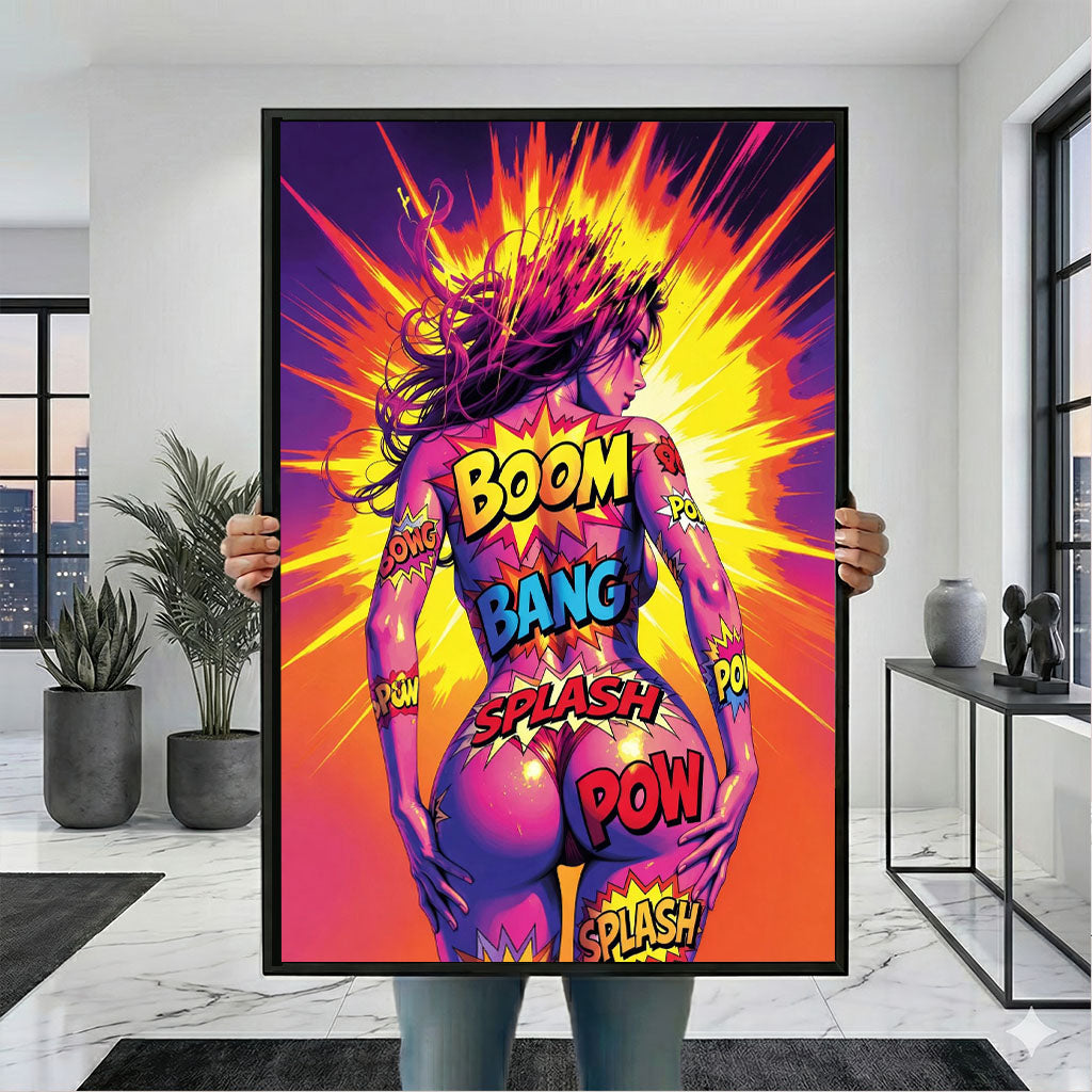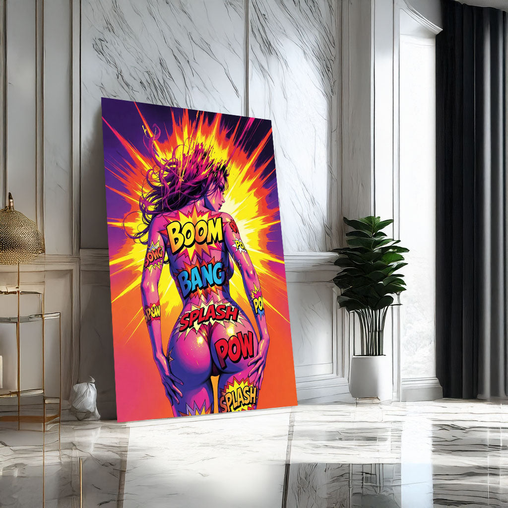 Dynamic Comic Book Heroine Explosion Canvas Wall Art