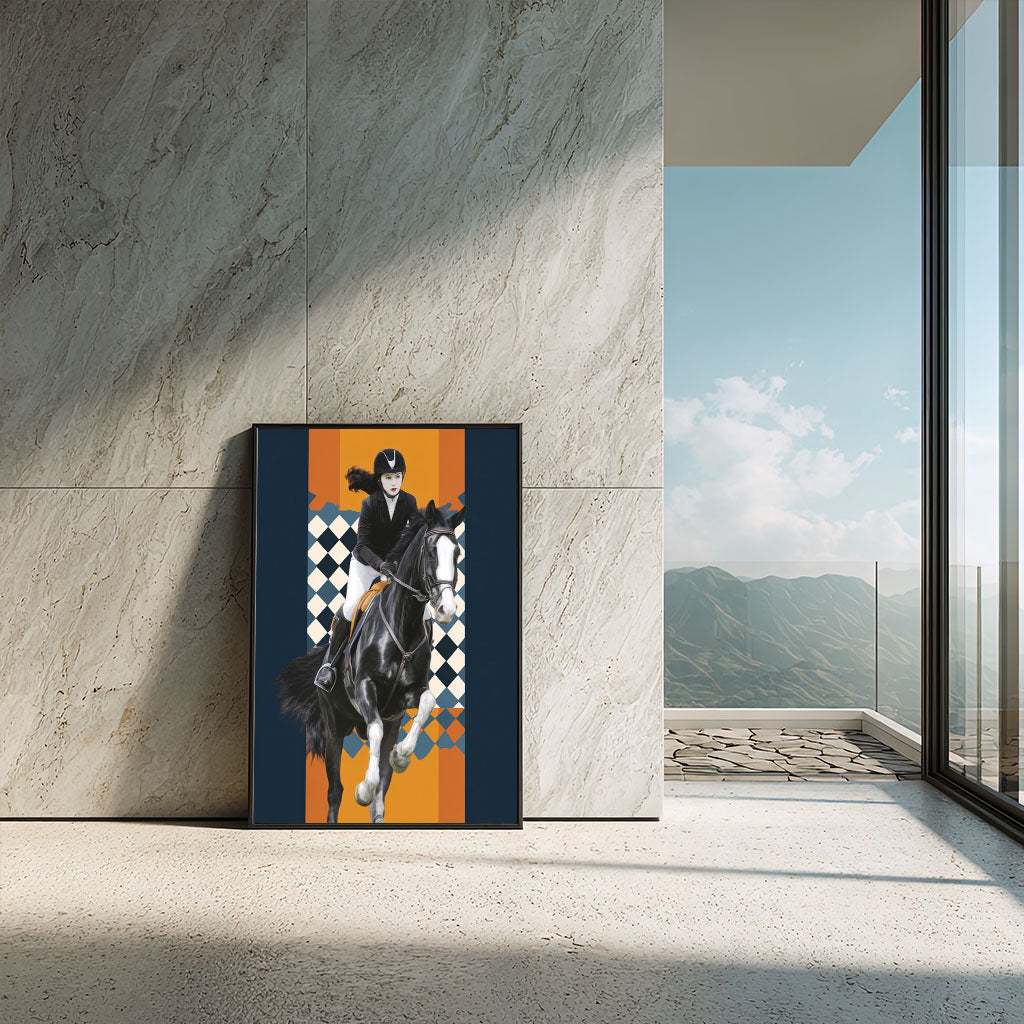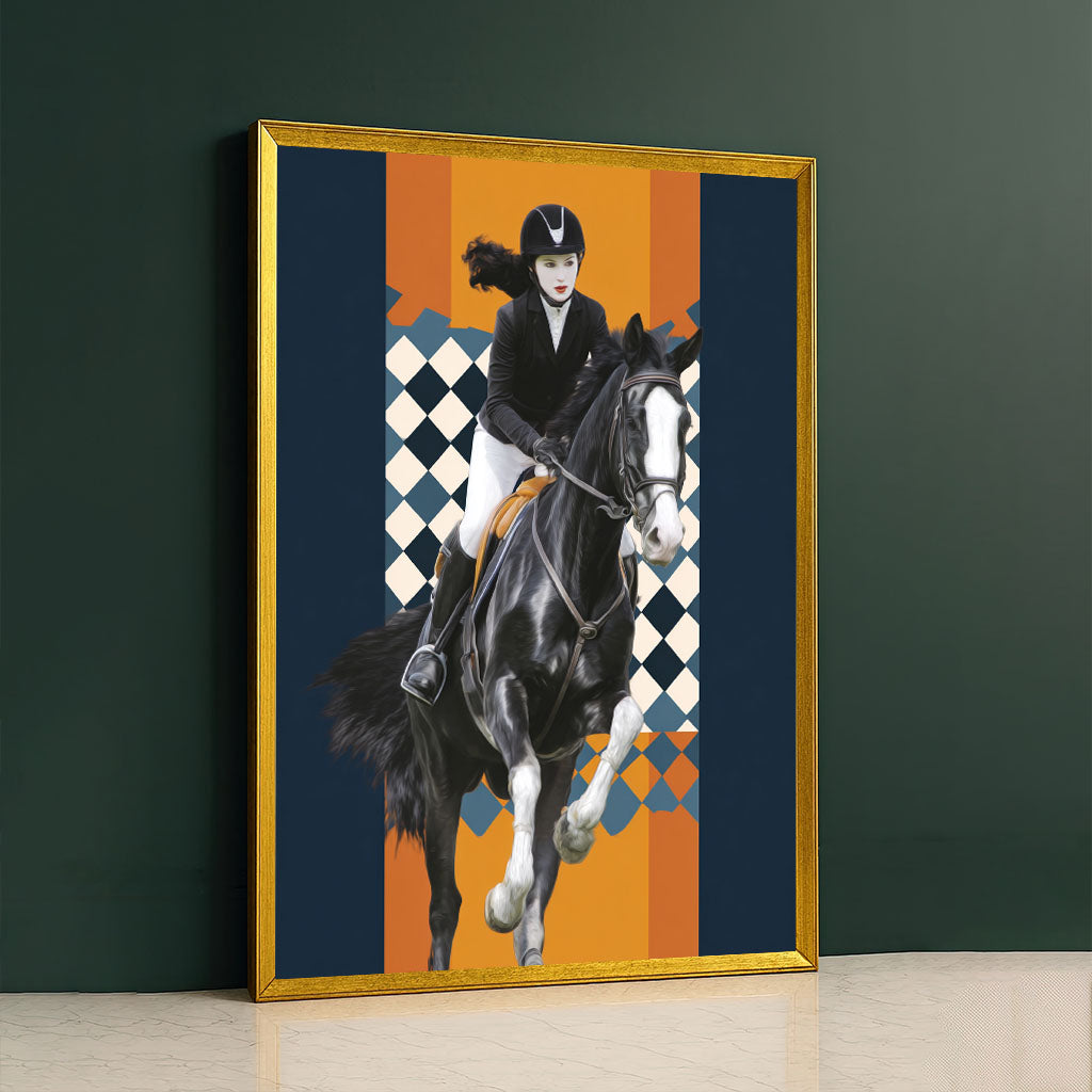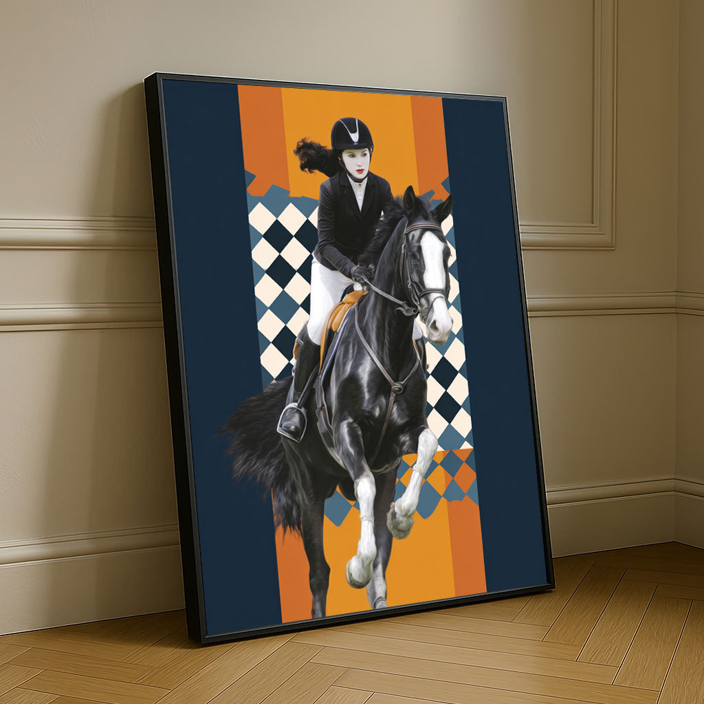 Dynamic Equestrian Woman On Black Horse Canvas Wall Art