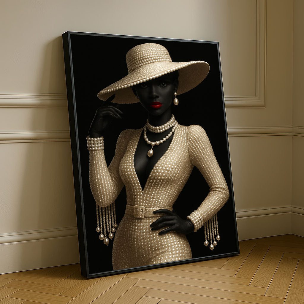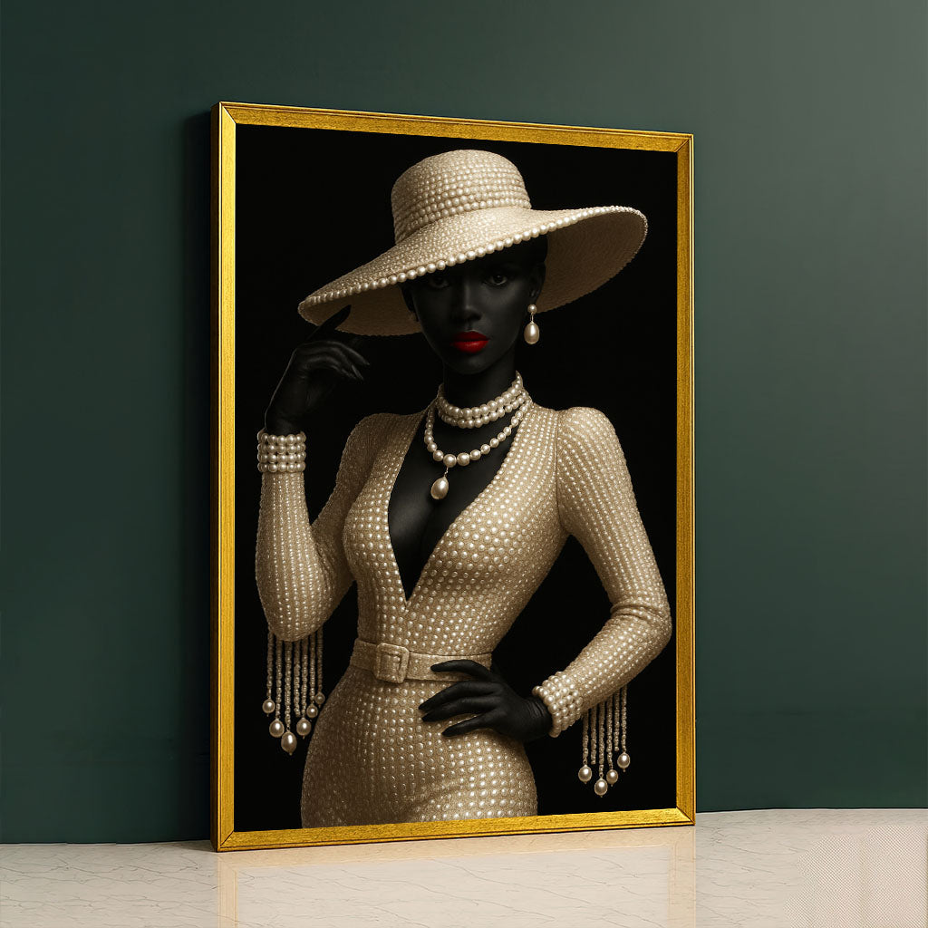 Elegant Black Woman In Pearl Hat Canvas Wall Art