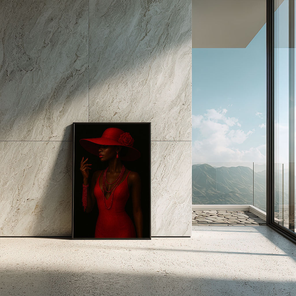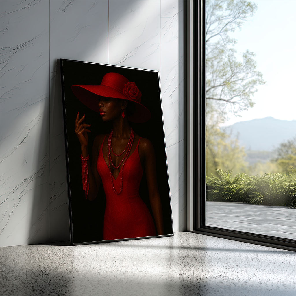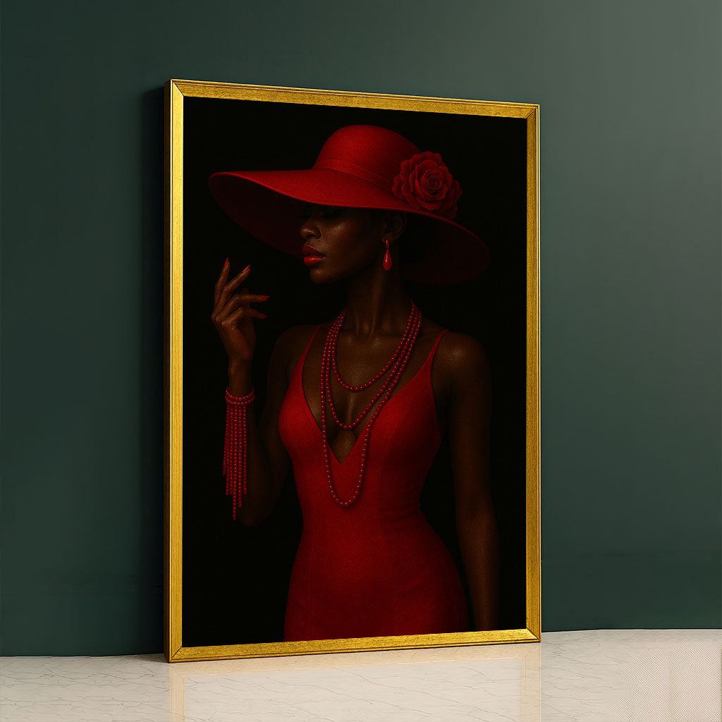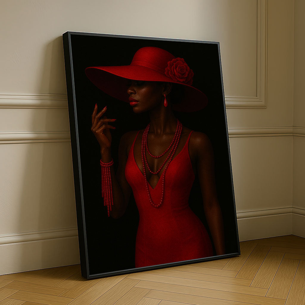 Elegant Black Woman In Red Hat Canvas Wall Art