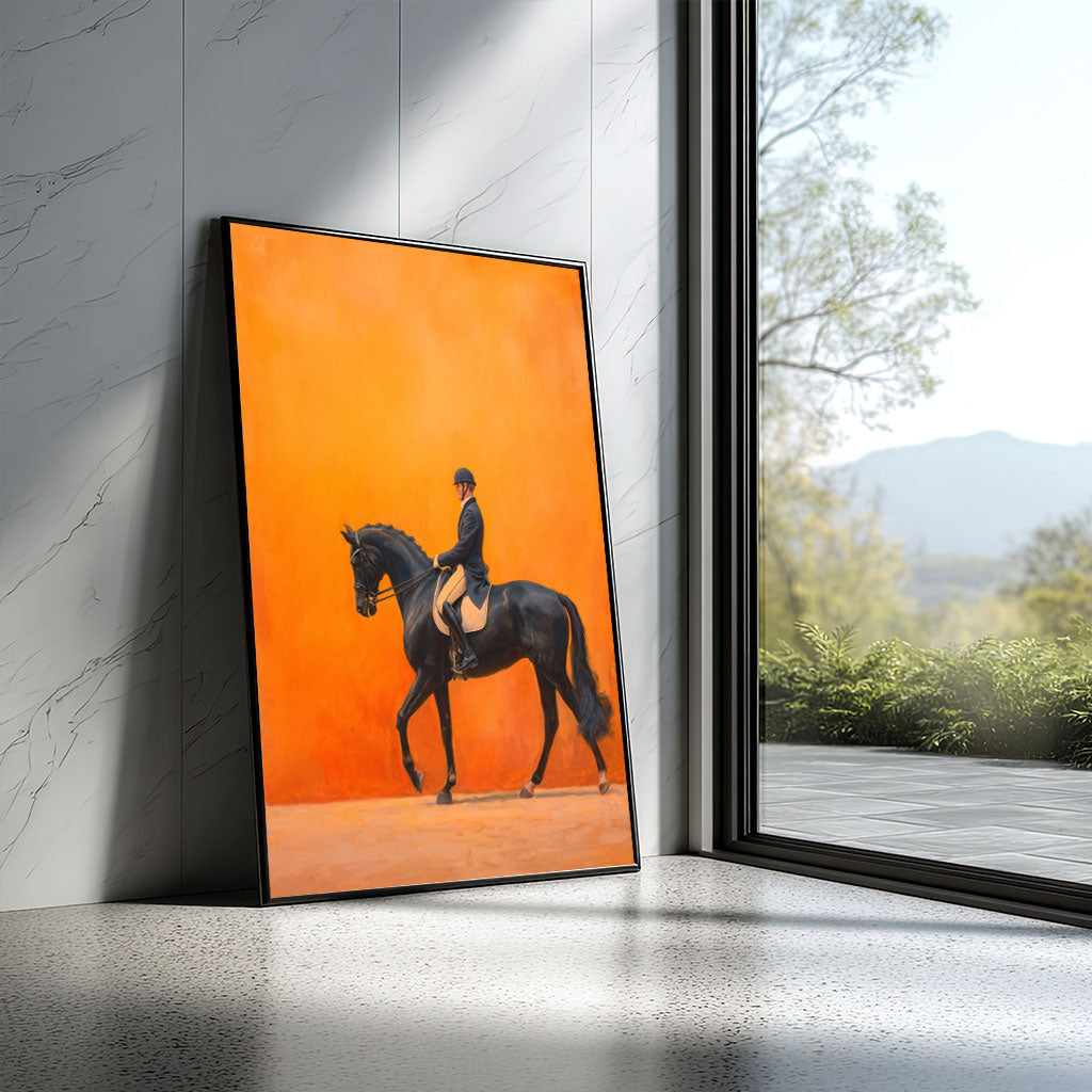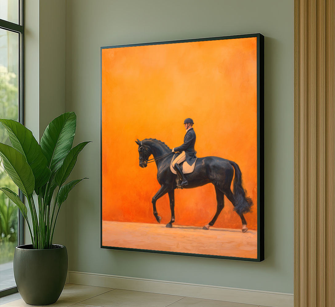 Elegant Equestrian Rider On Black Horse Canvas Wall Art