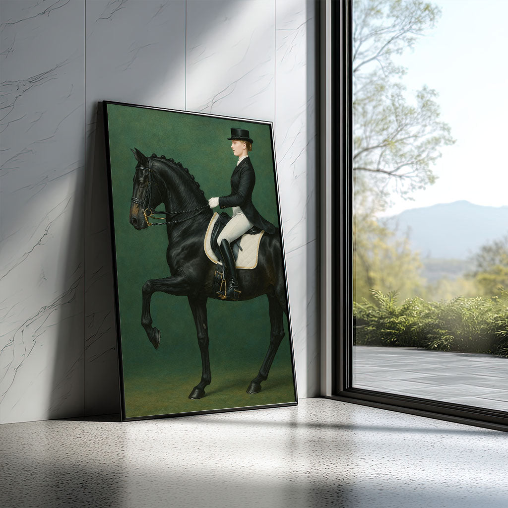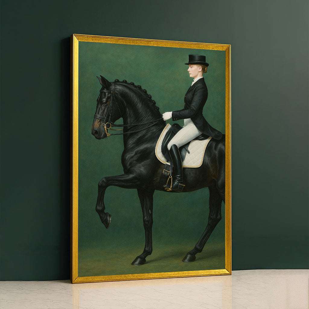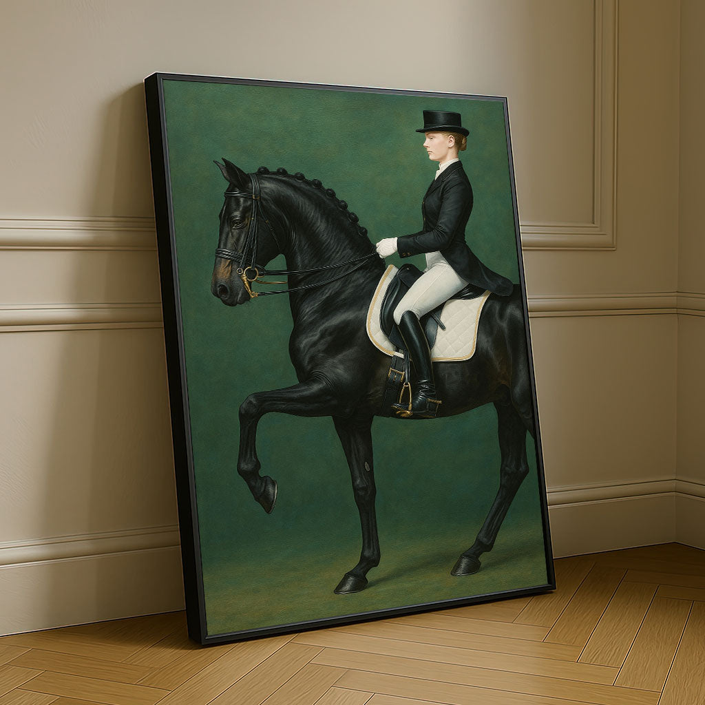 Elegant Equestrian Rider On Black Horse Canvas Wall Art