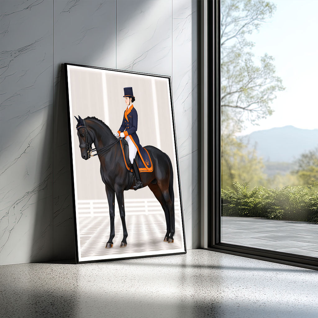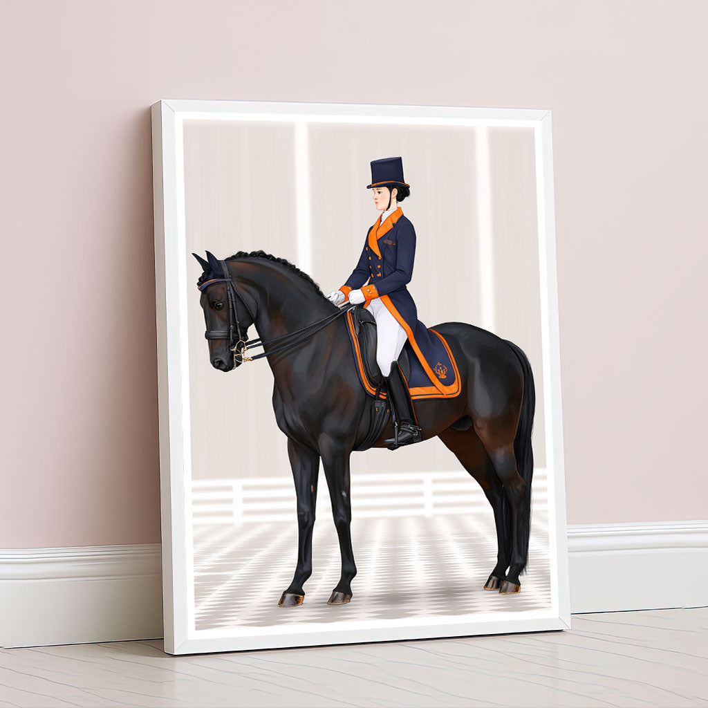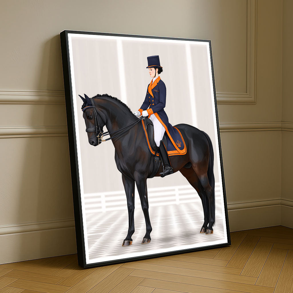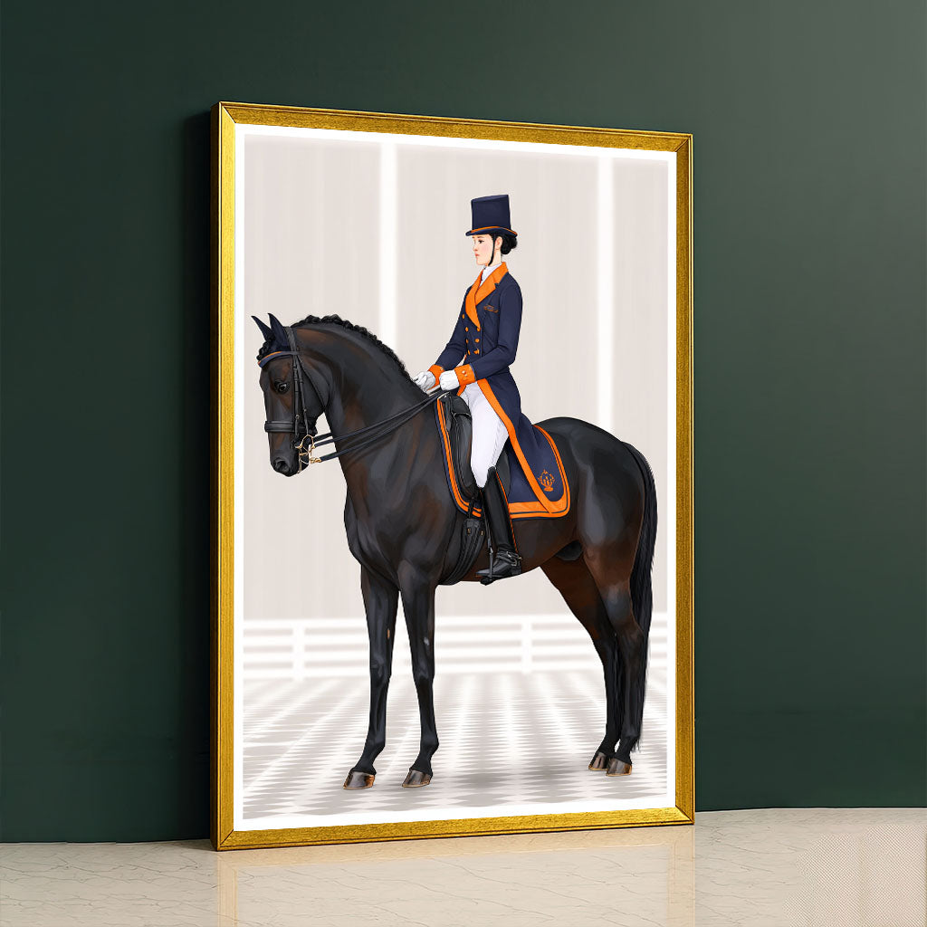 Elegant Equestrian Woman On Black Horse Canvas Wall Art