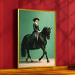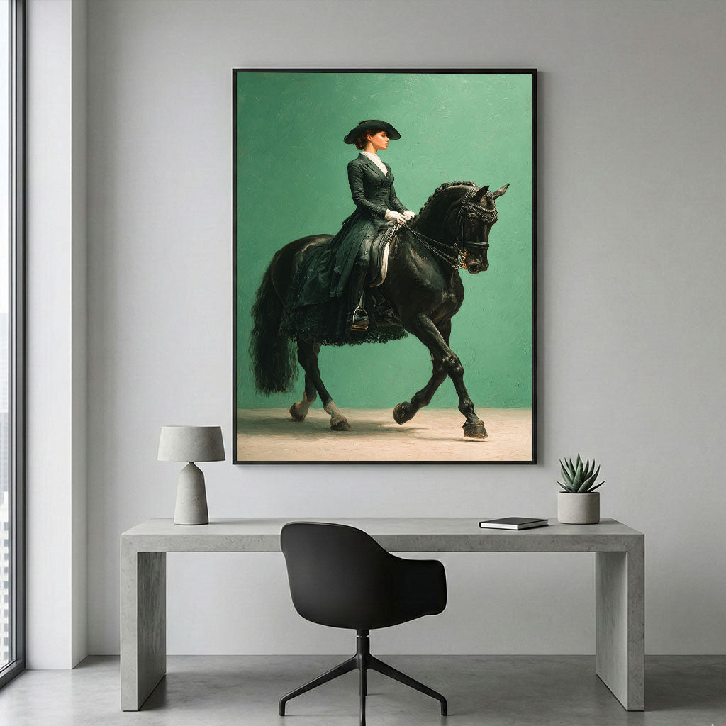 Elegant Lady Riding Black Horse Canvas Wall Art