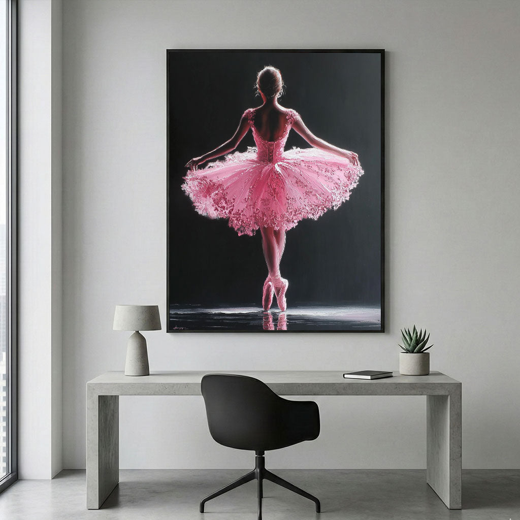 Elegant Pink Ballerina In Tutu Canvas Wall Art