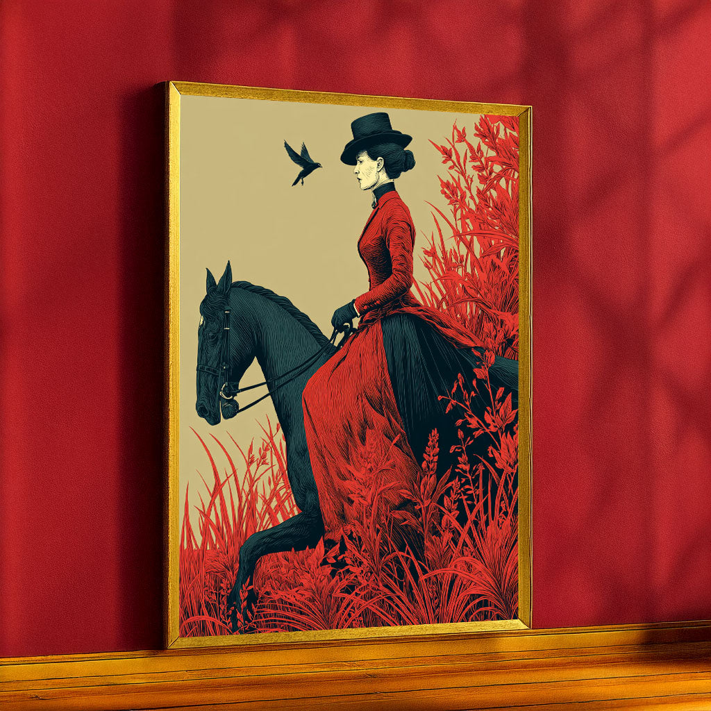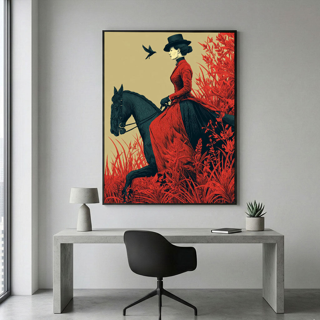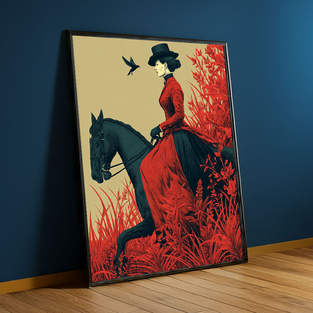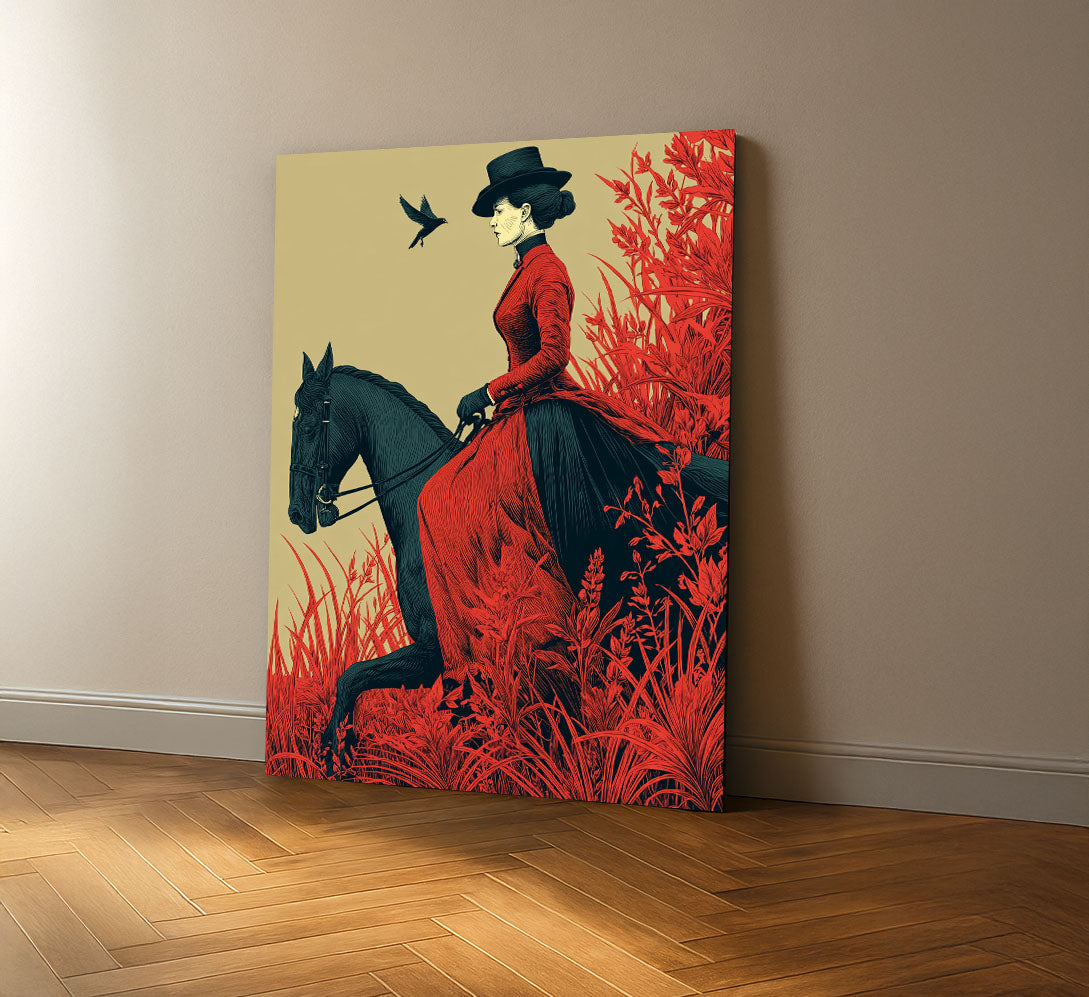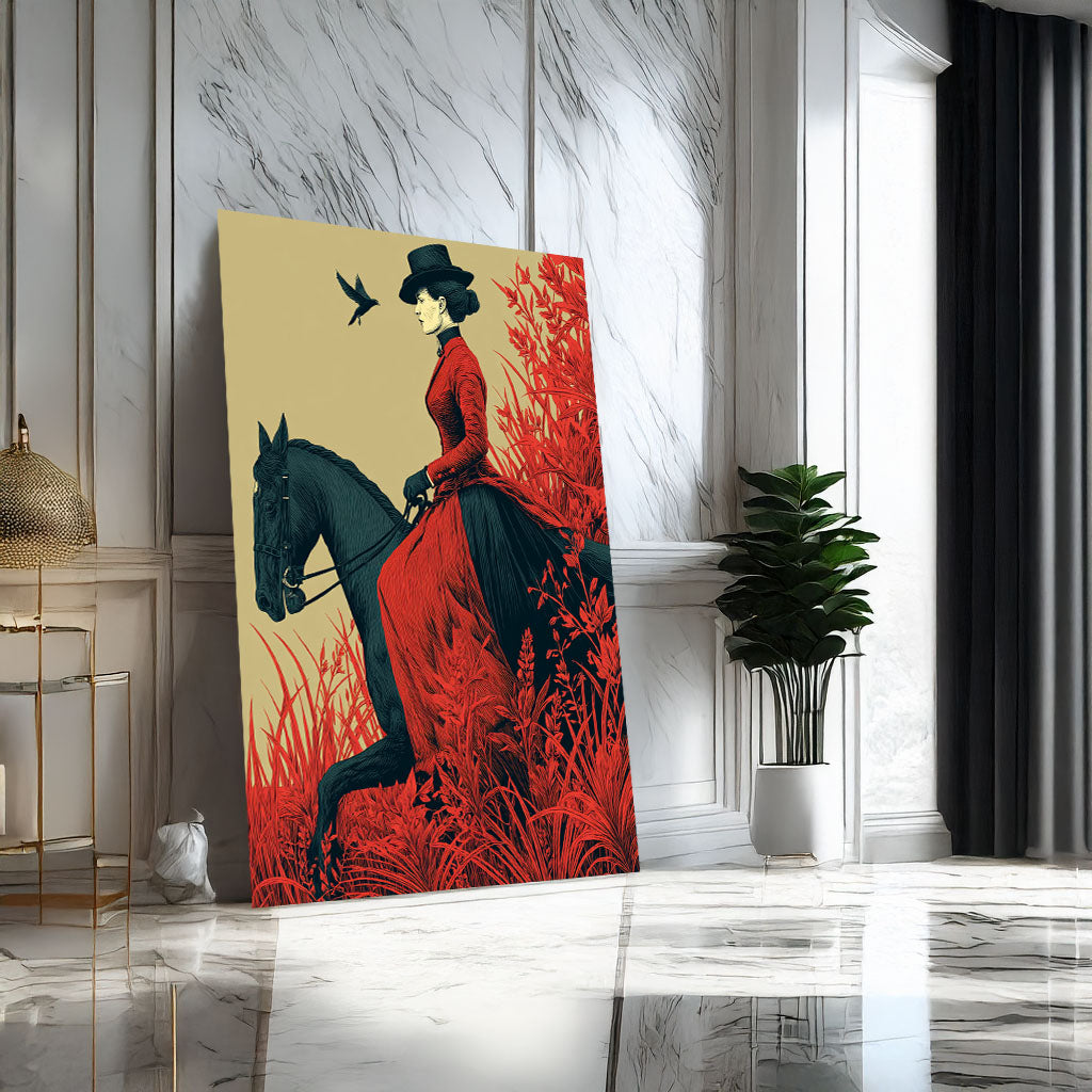 Elegant Victorian Woman Riding Horse Canvas Wall Art