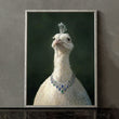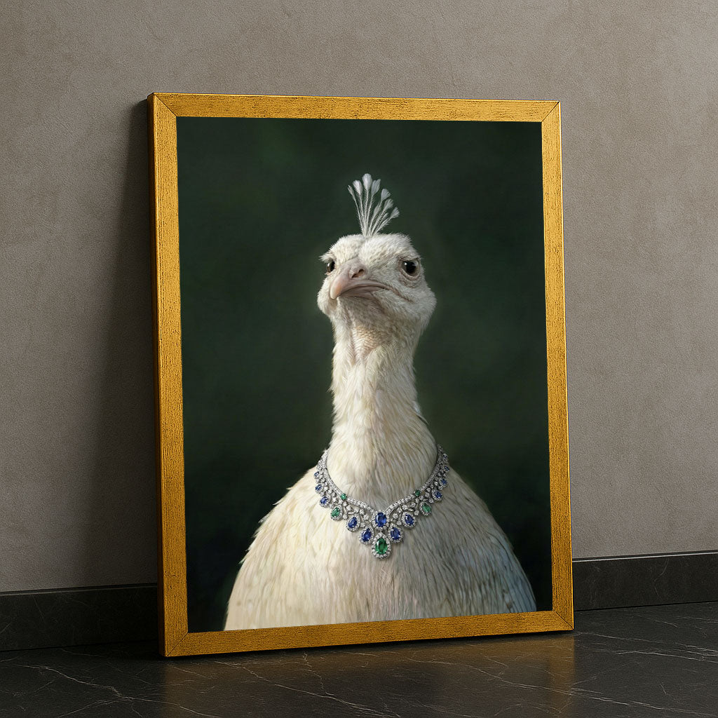 Elegant White Peacock With Jewel Necklace Canvas Wall Art