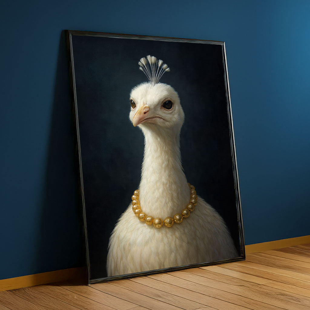 Elegant White Peacock With Pearl Necklace Canvas Wall Art