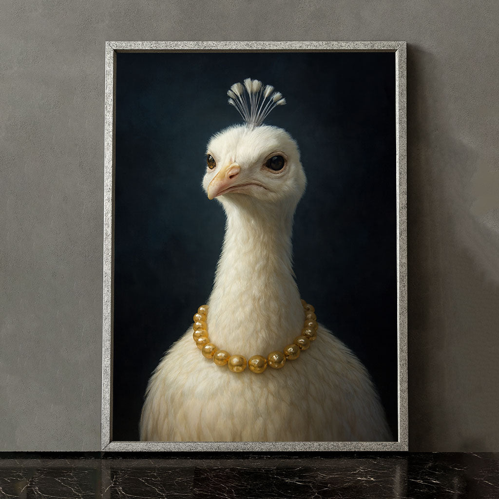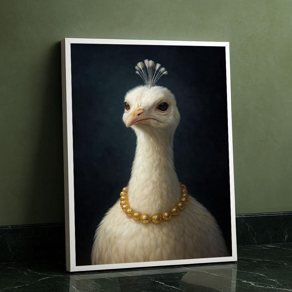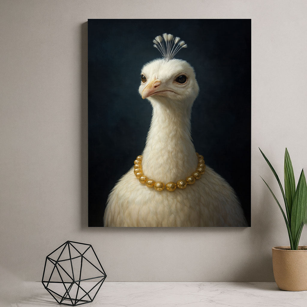 Elegant White Peacock With Pearl Necklace Canvas Wall Art