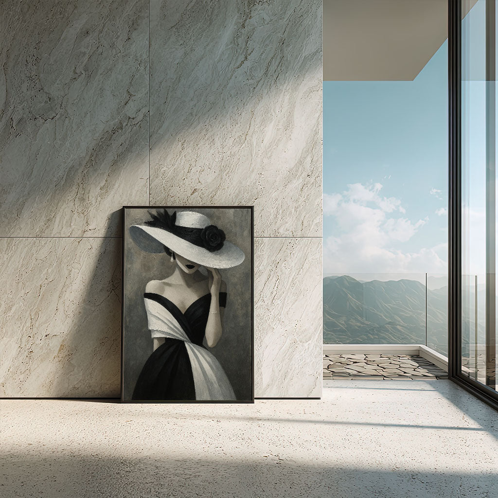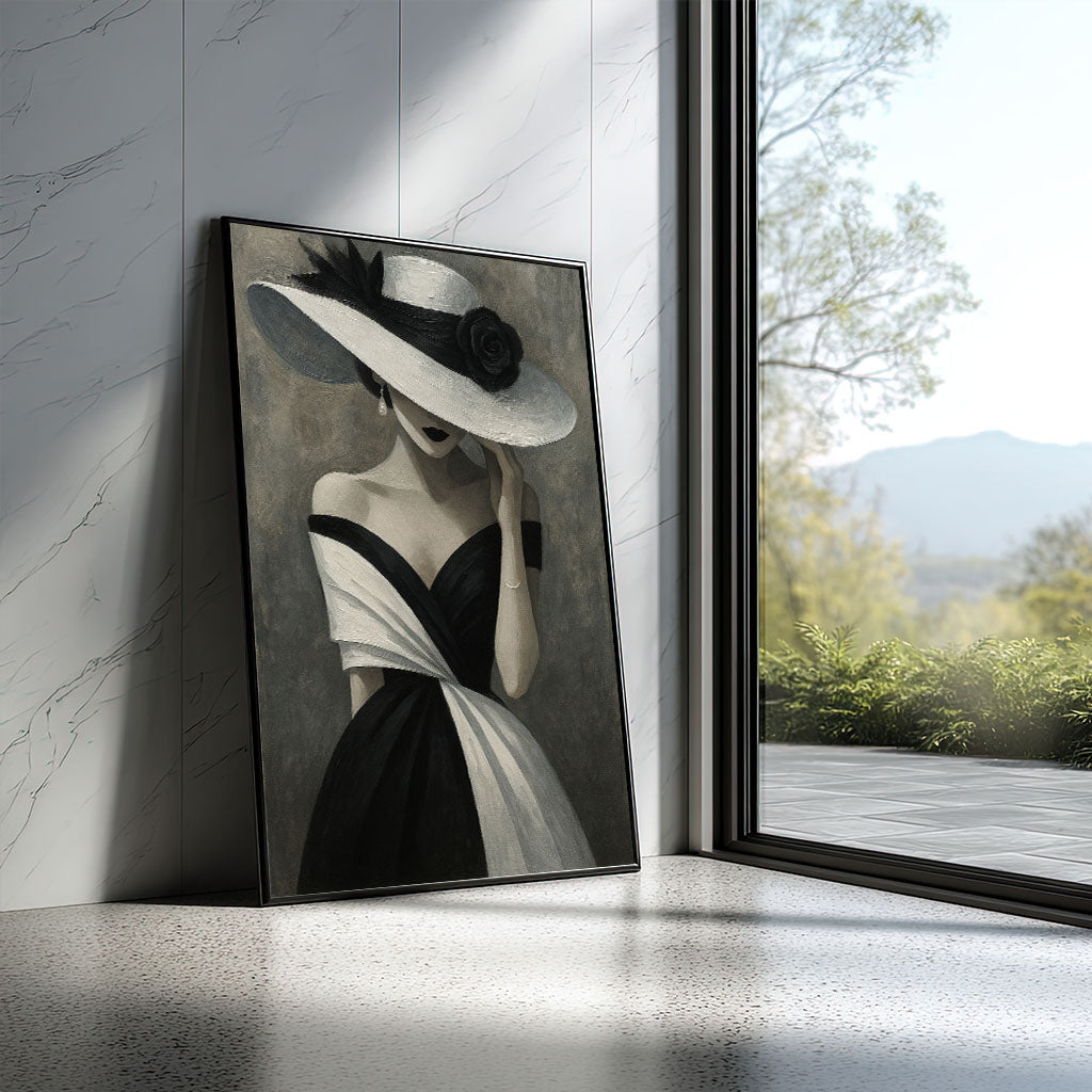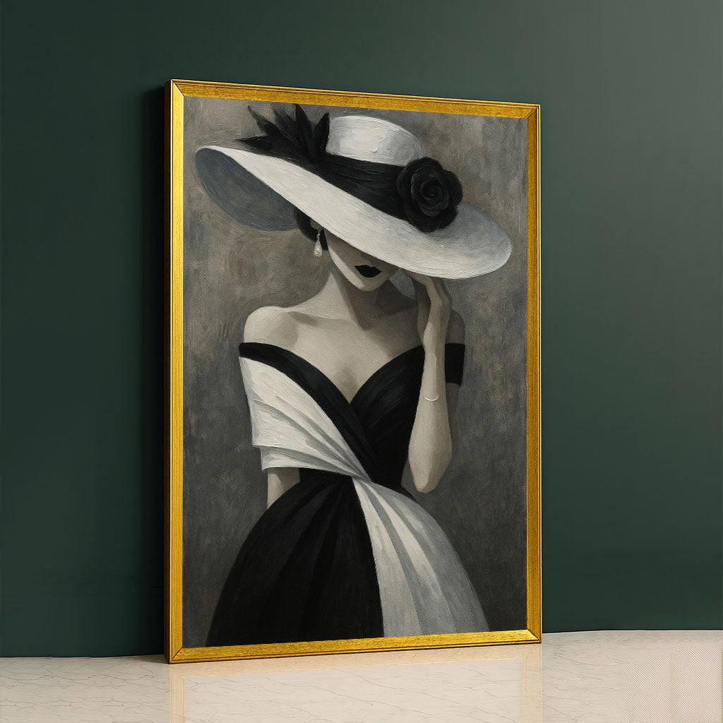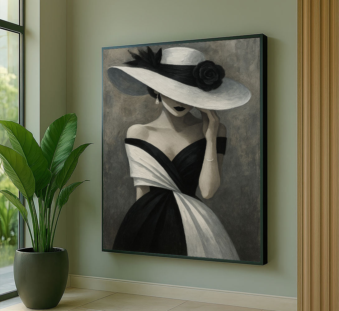 Elegant Woman In Black And White Hat Canvas Wall Art