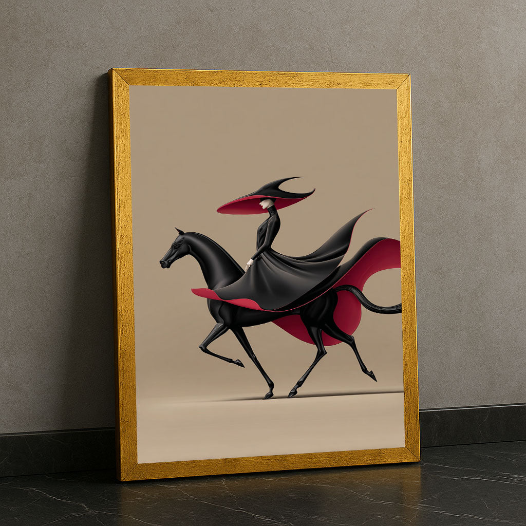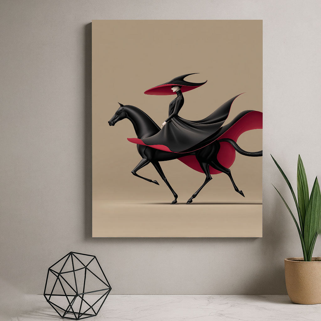 Elegant Woman In Black Riding Horse Canvas Wall Art