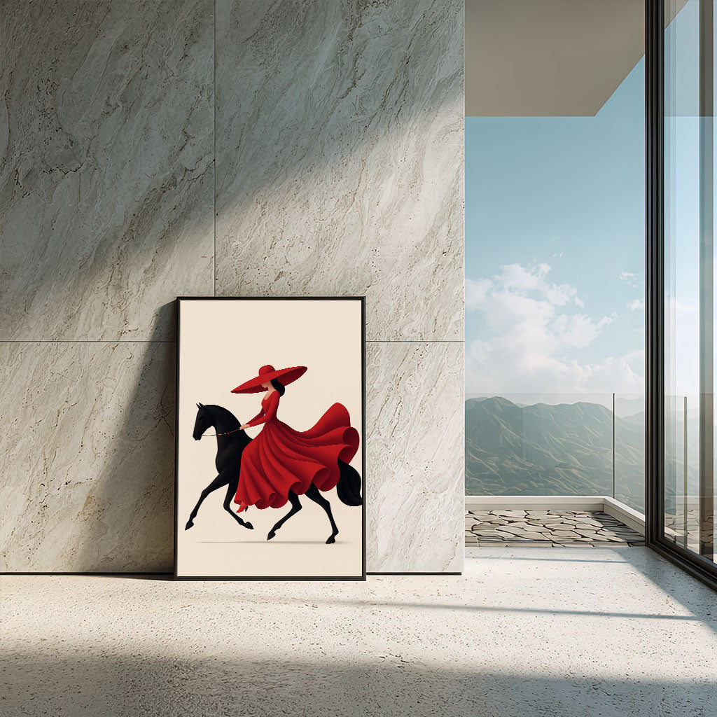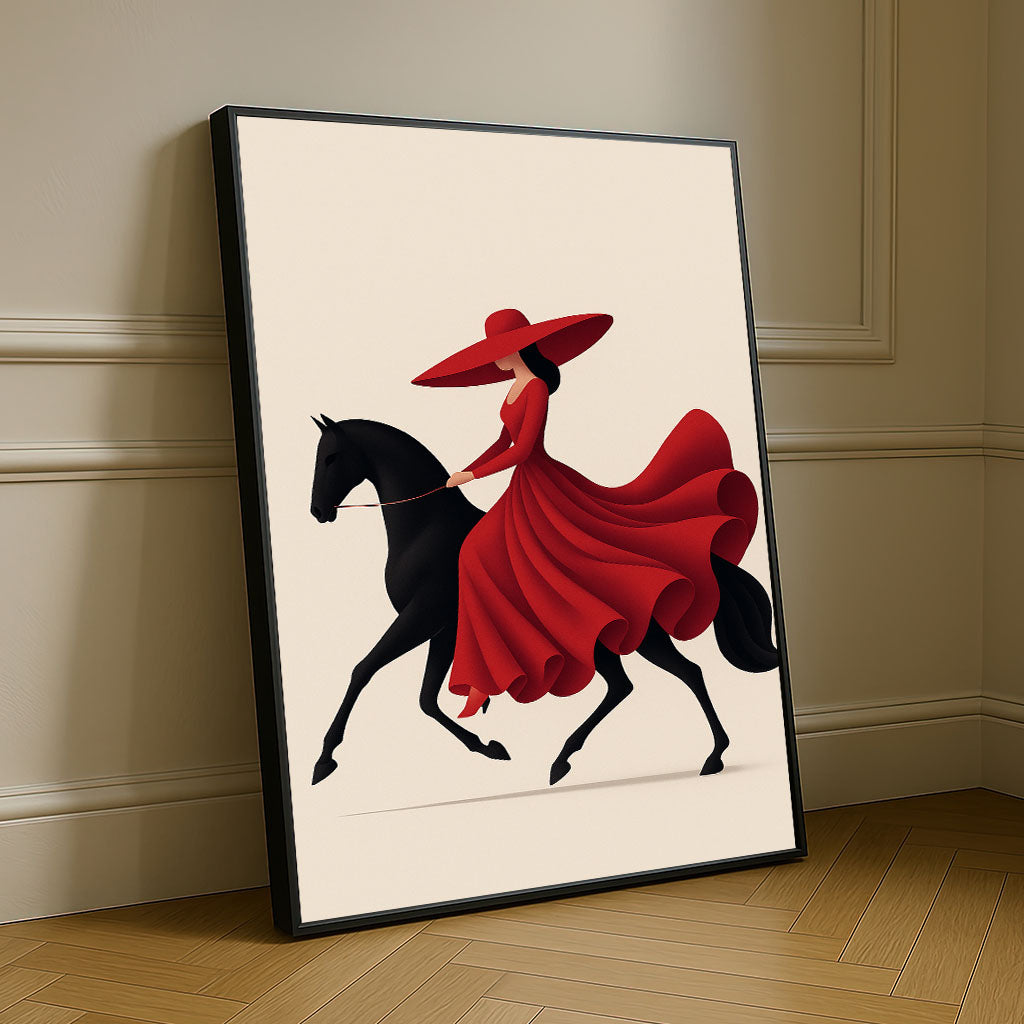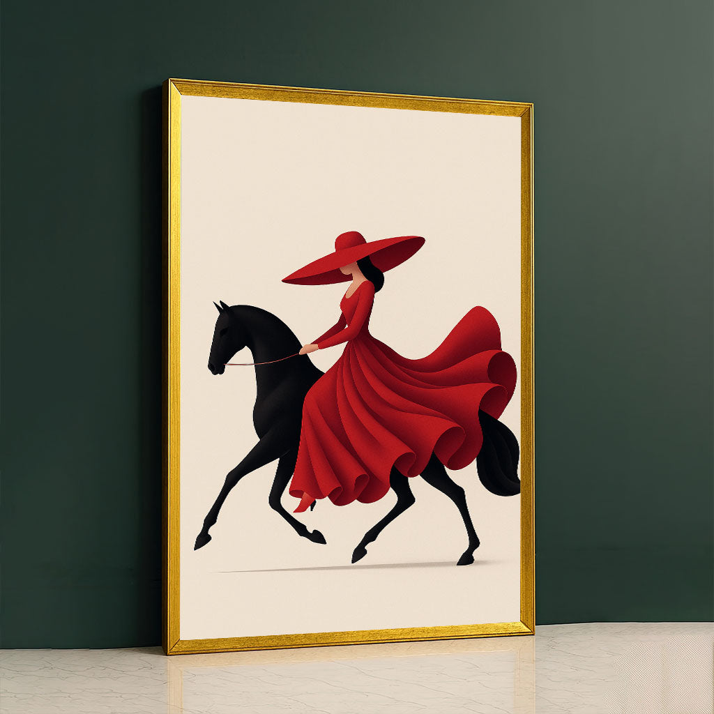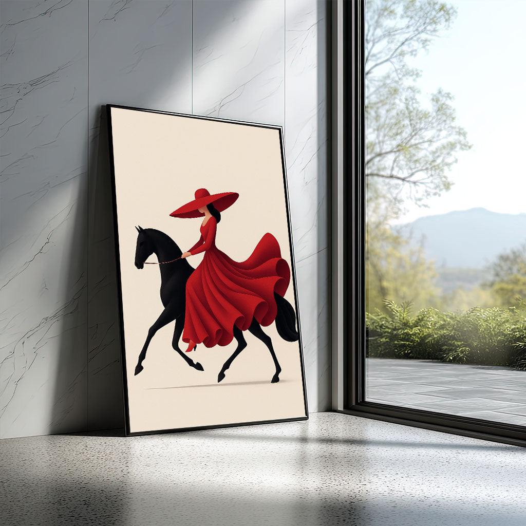 Elegant Woman In Flowing Red Dress Canvas Wall Art
