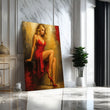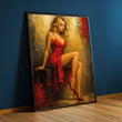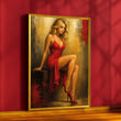 Elegant Woman In Red Dress Sitting Pose Canvas Wall Art