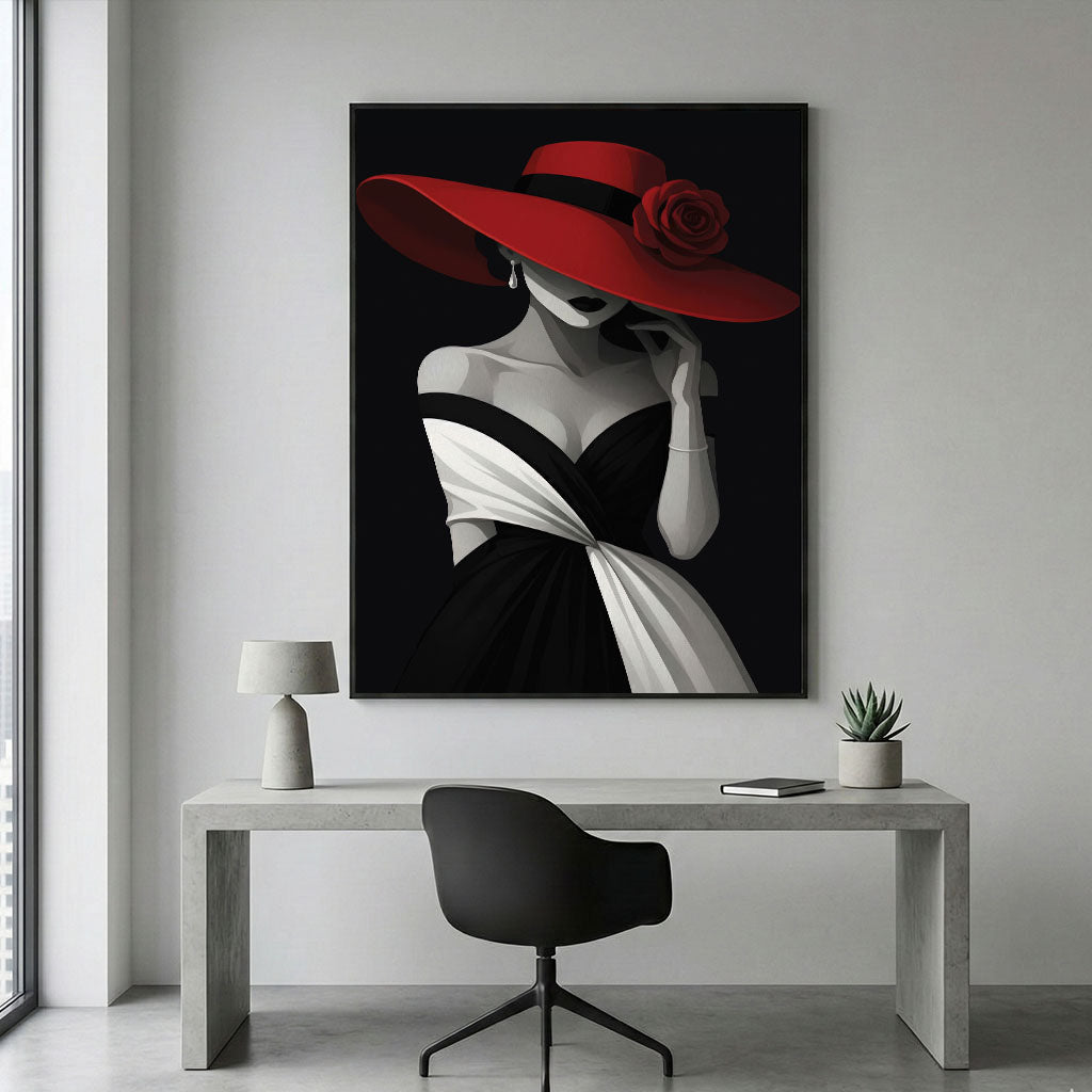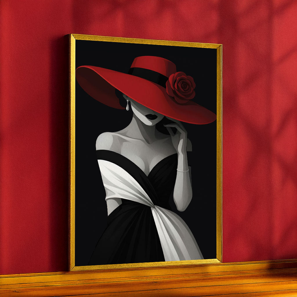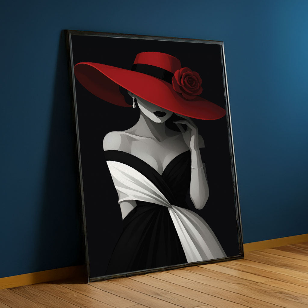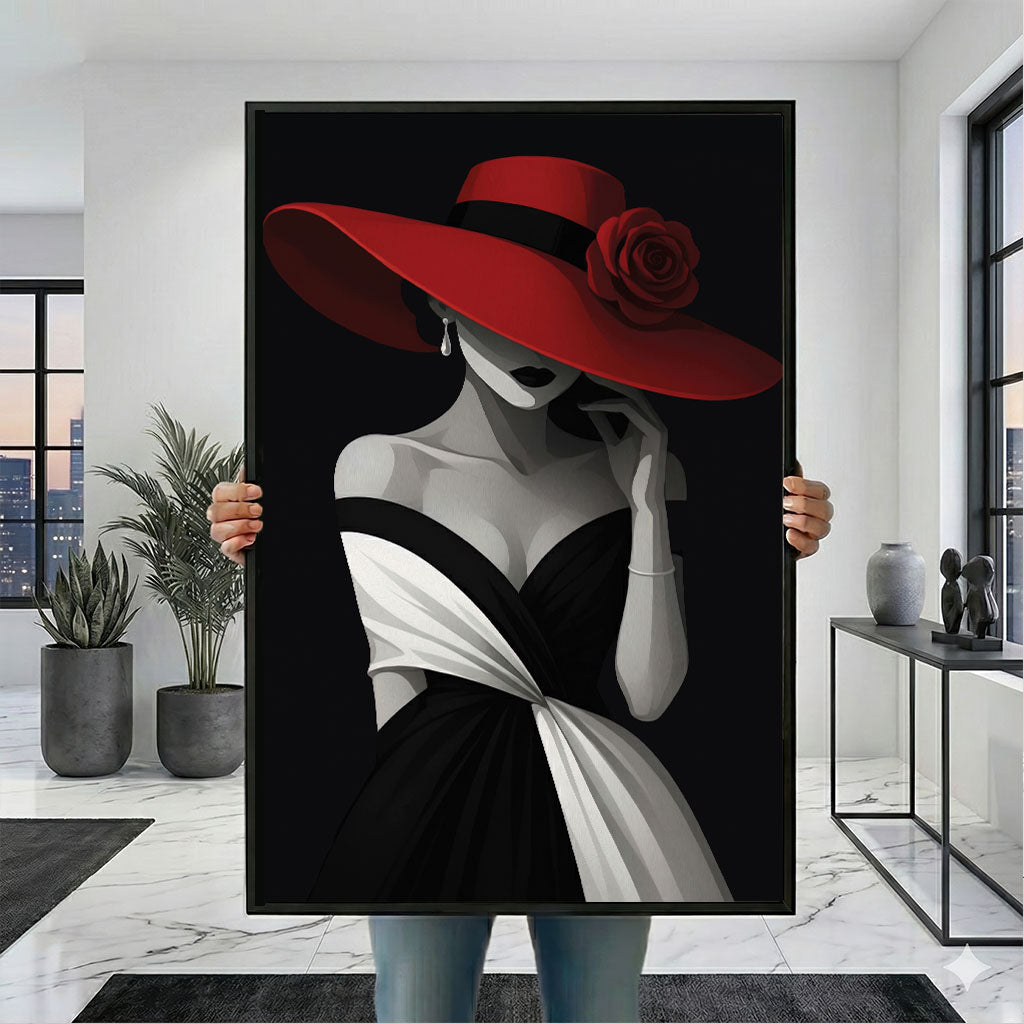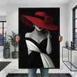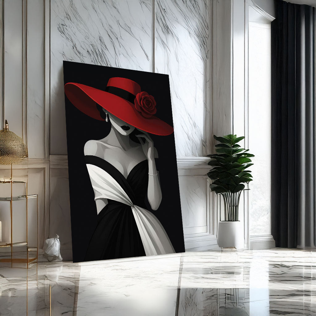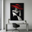 Elegant Woman In Red Hat And Black Dress Canvas Wall Art