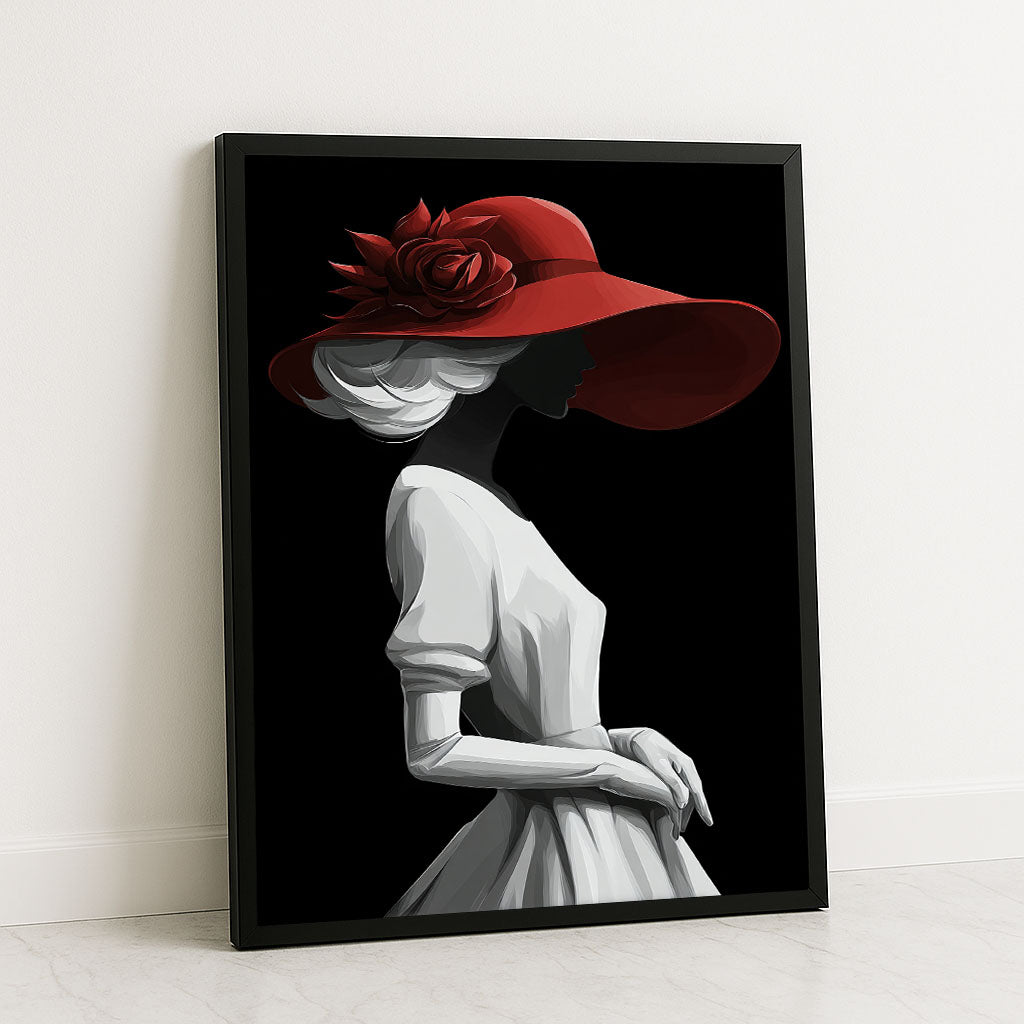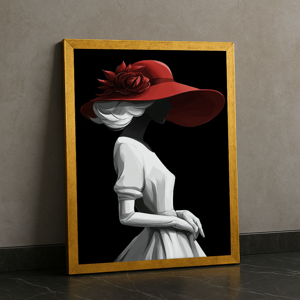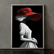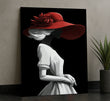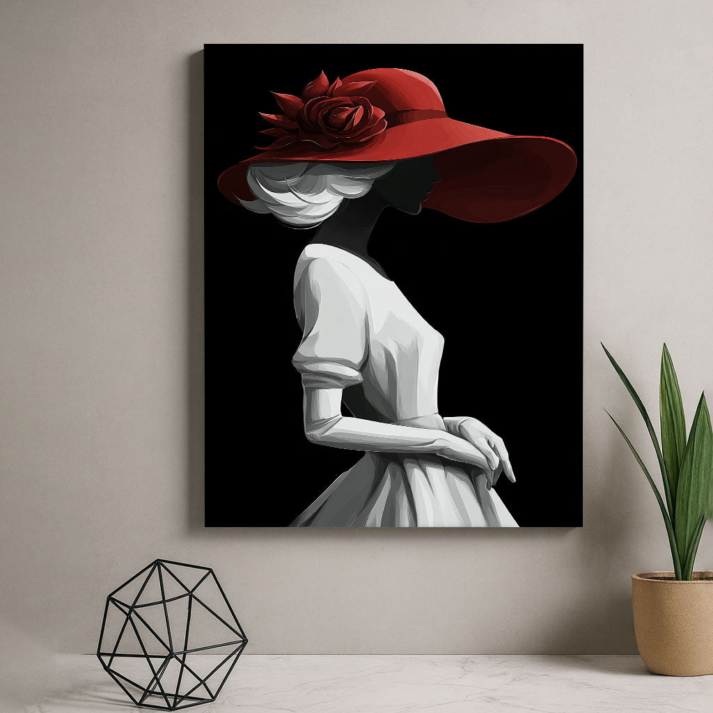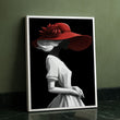 Elegant Woman In Red Hat And White Dress Canvas Wall Art