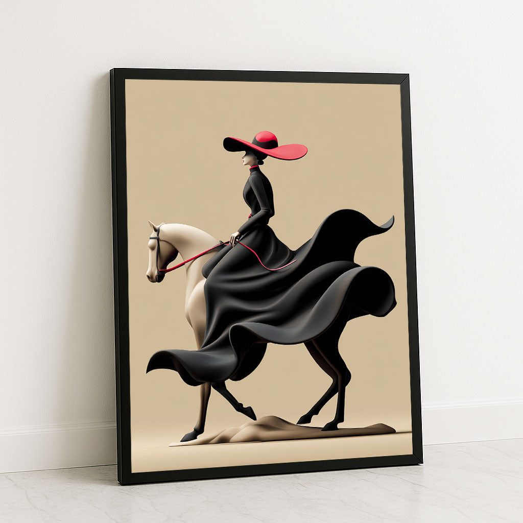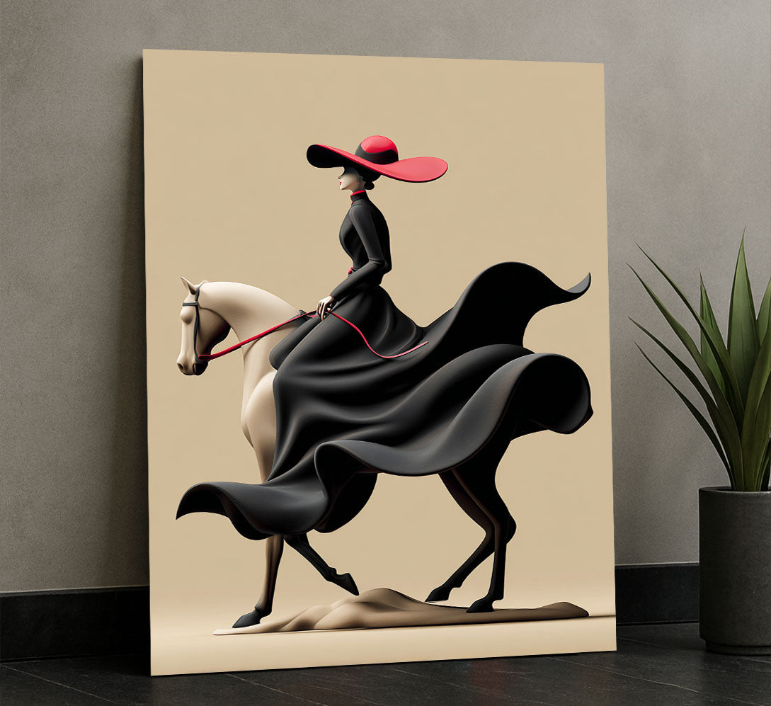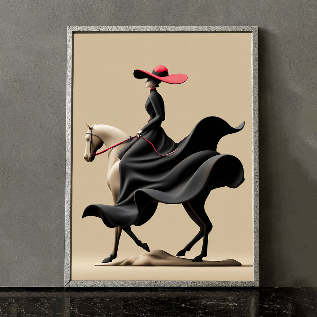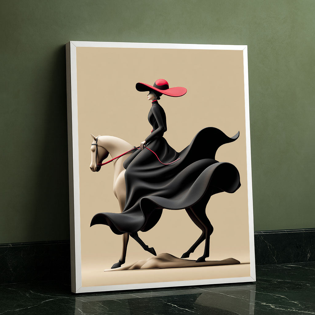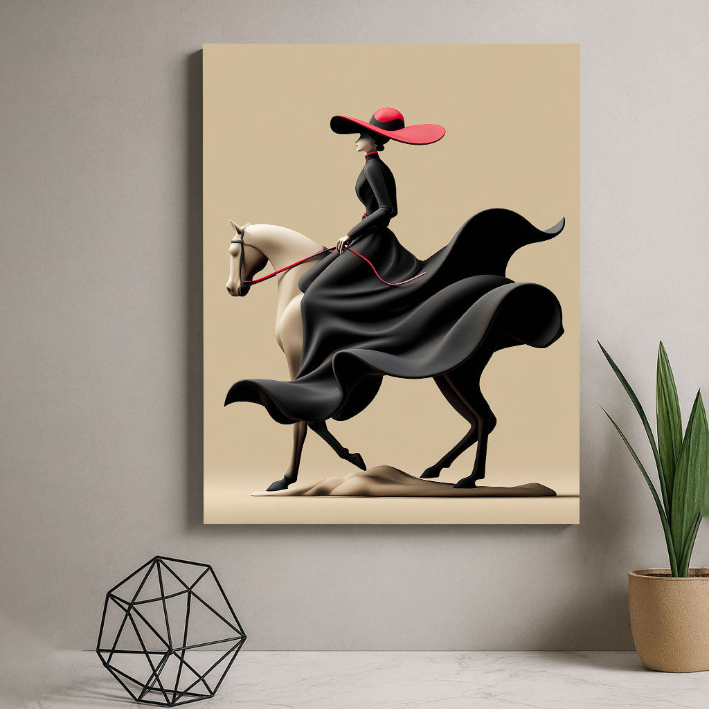 Elegant Woman In Red Hat On Horseback Canvas Wall Art