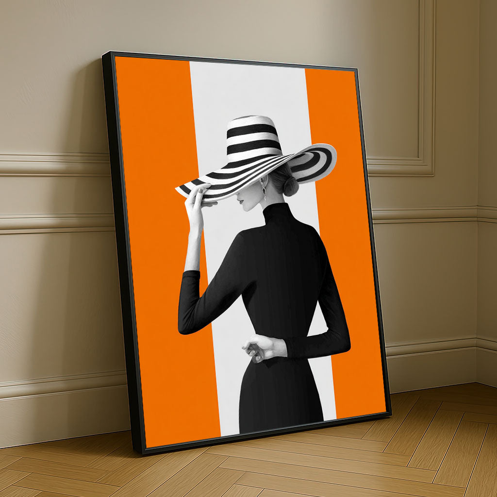 Elegant Woman In Striped Hat Canvas Wall Art