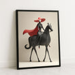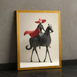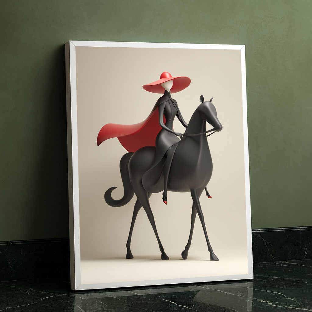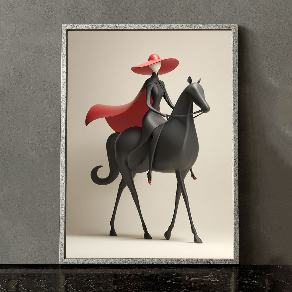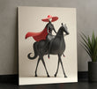 Elegant Woman On Black Horse With Red Hat Canvas Wall Art