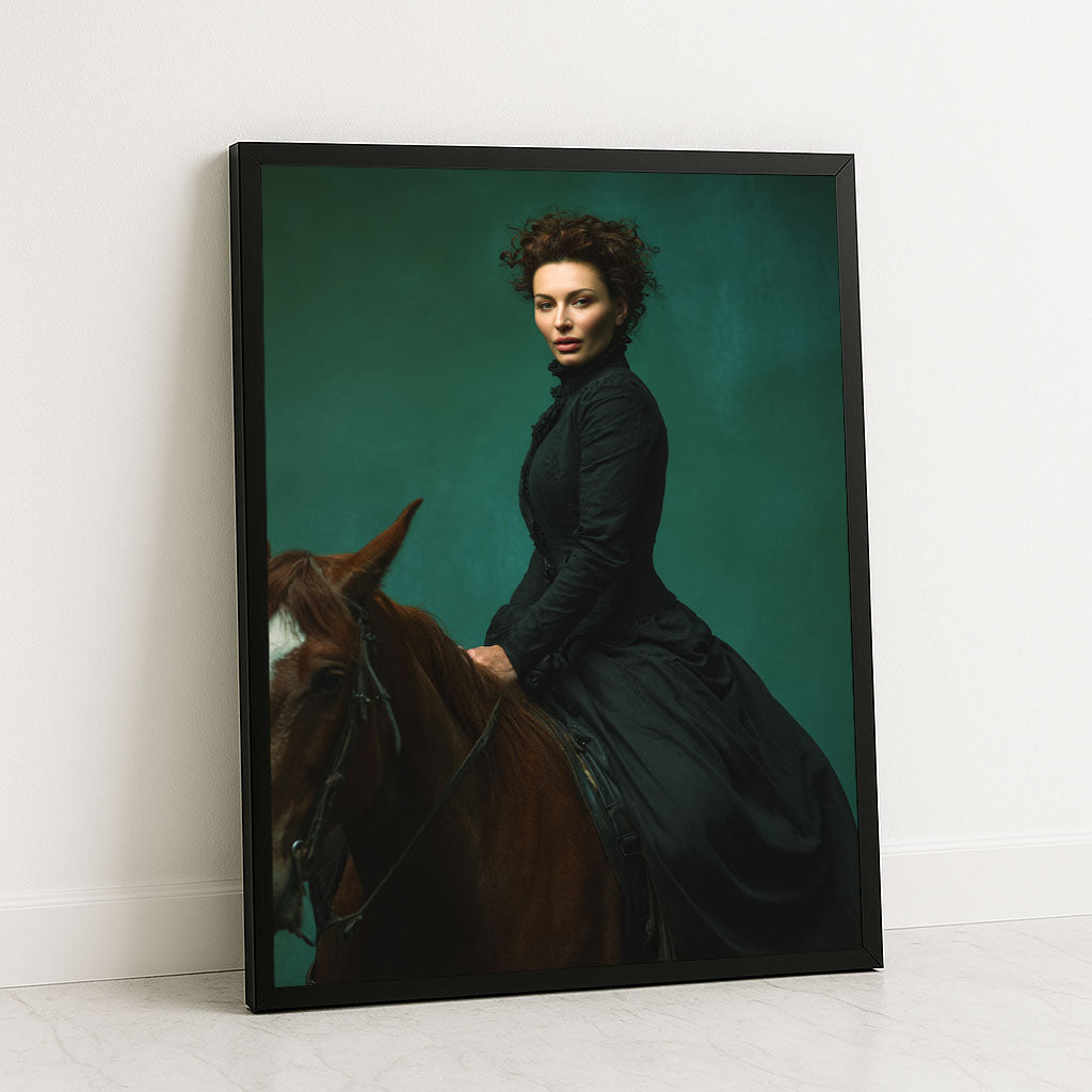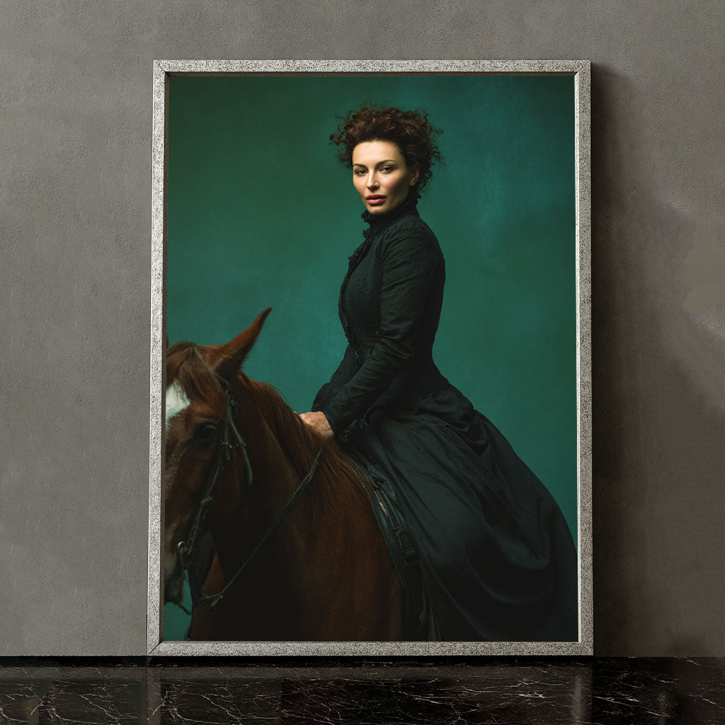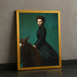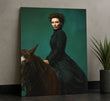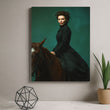 Elegant Woman Riding Horse In Black Dress Canvas Wall Art