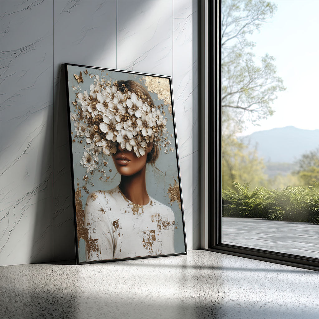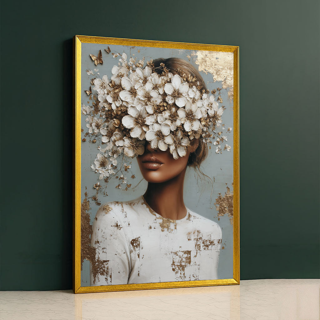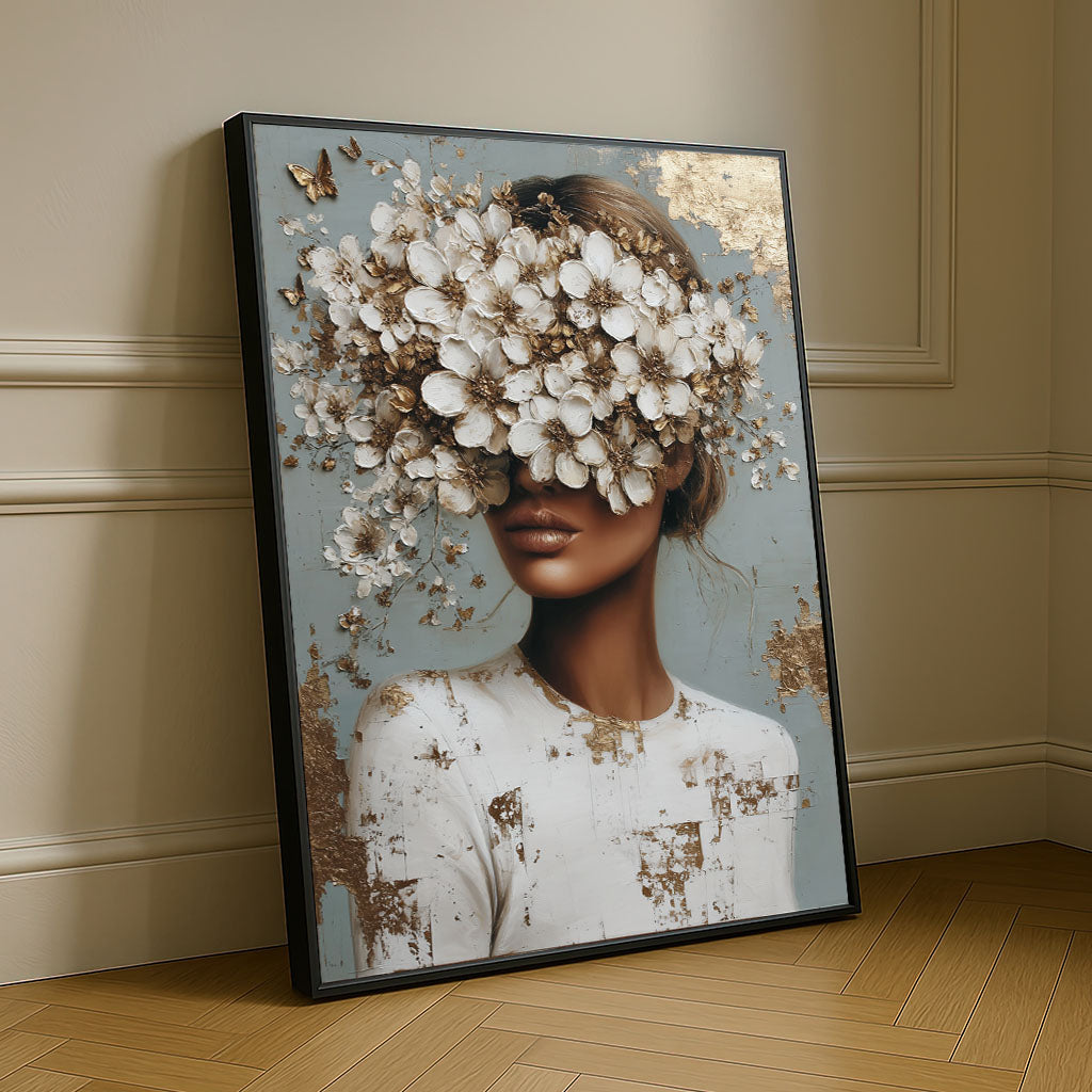 Elegant Woman With Floral Headpiece Canvas Wall Art