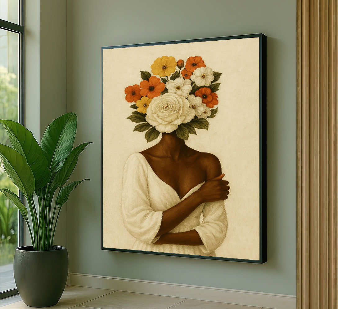 Elegant Woman With Floral Headpiece Canvas Wall Art