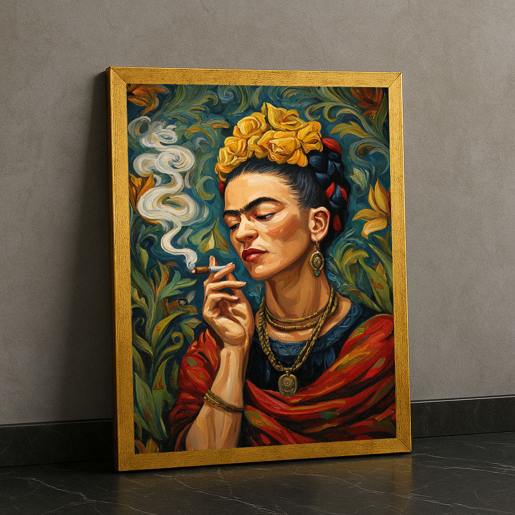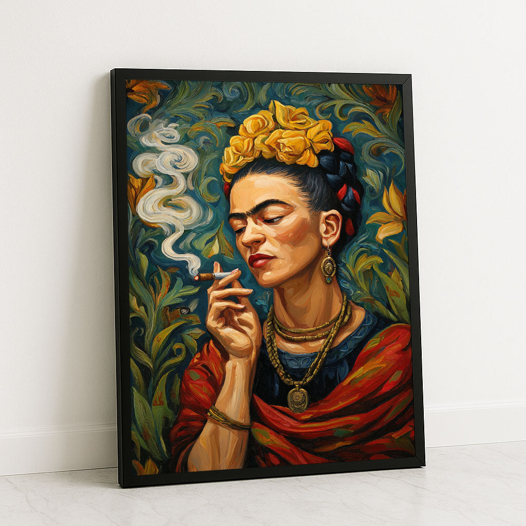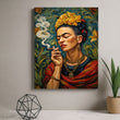 Elegant Woman With Yellow Flowers Smoking Canvas Wall Art
