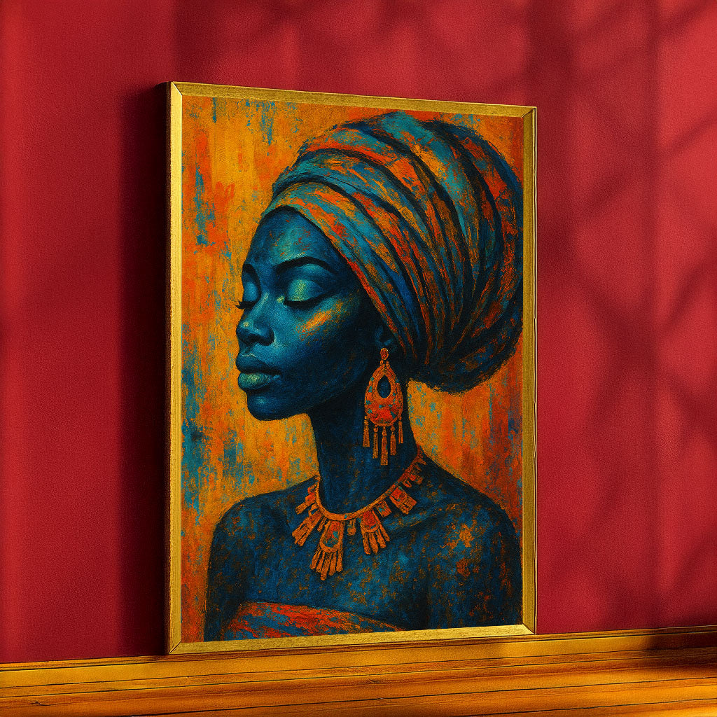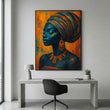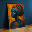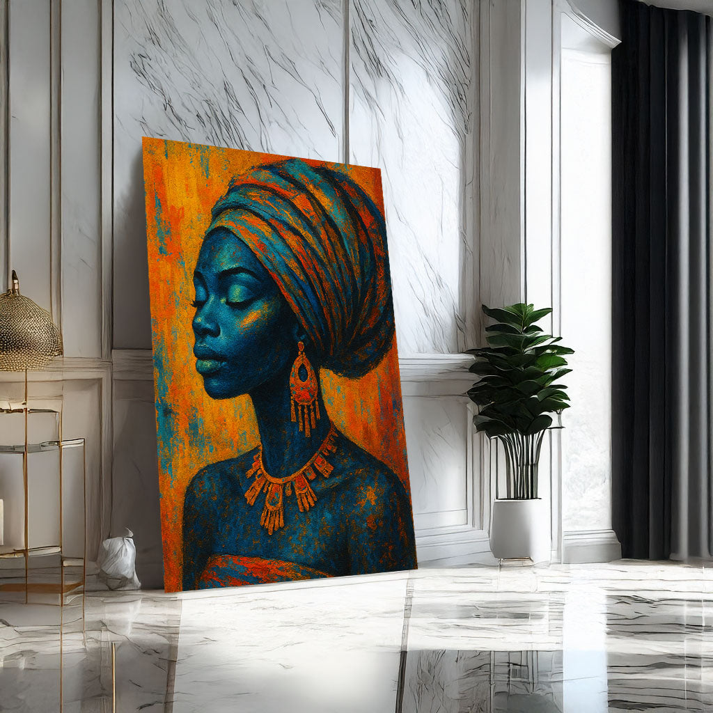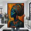 Enchanting Blue And Orange African Woman Canvas Wall Art
