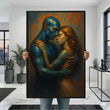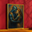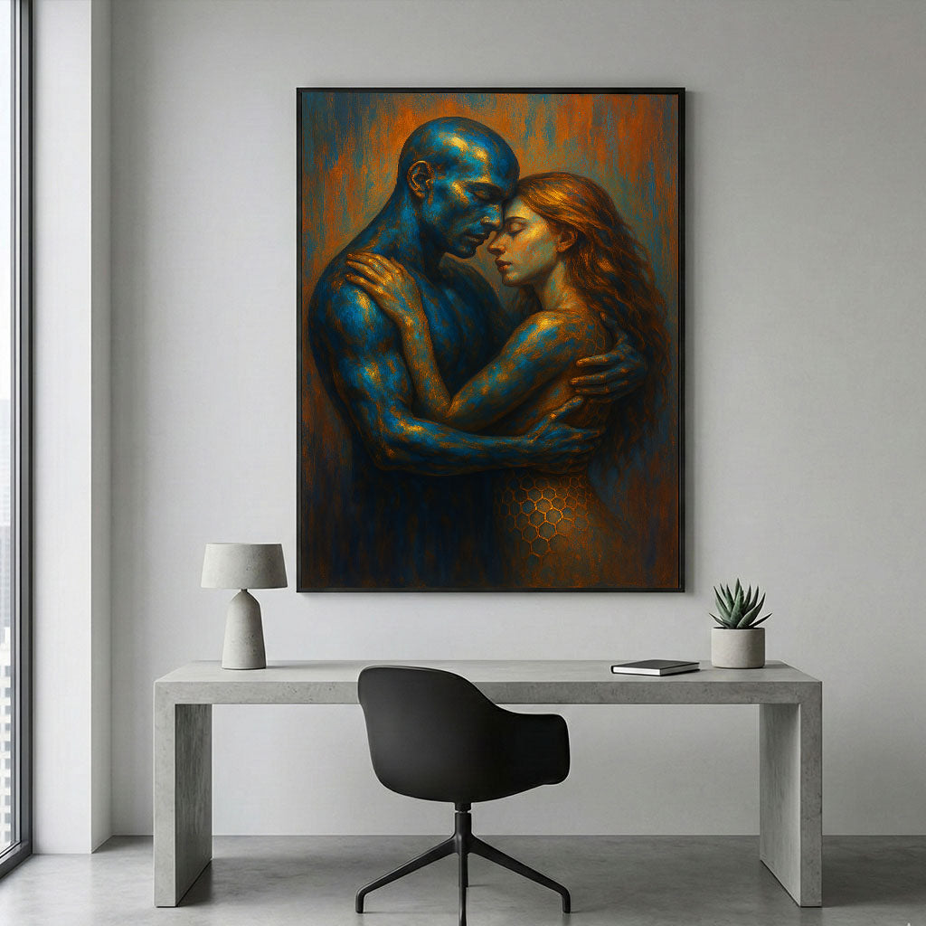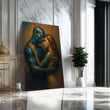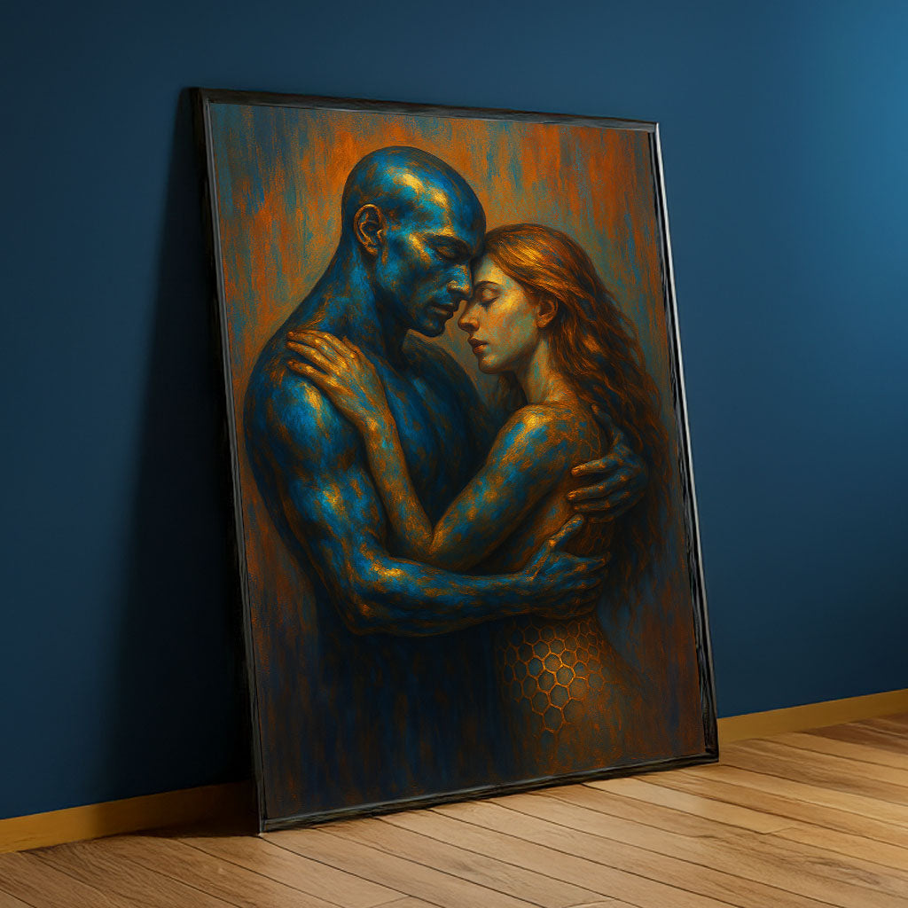 Enchanting Blue And Orange Embracing Couple Canvas Wall Art