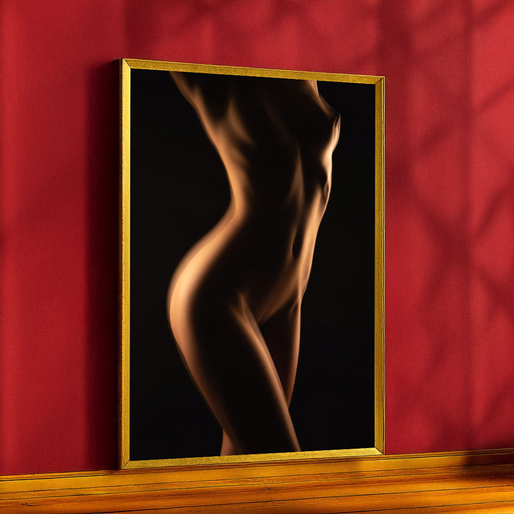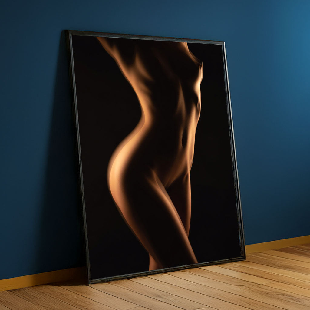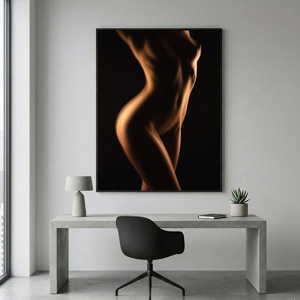 Enchanting Nude Female Silhouette In Golden Light Canvas Wall Art