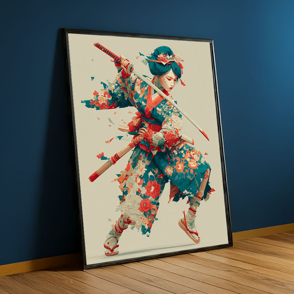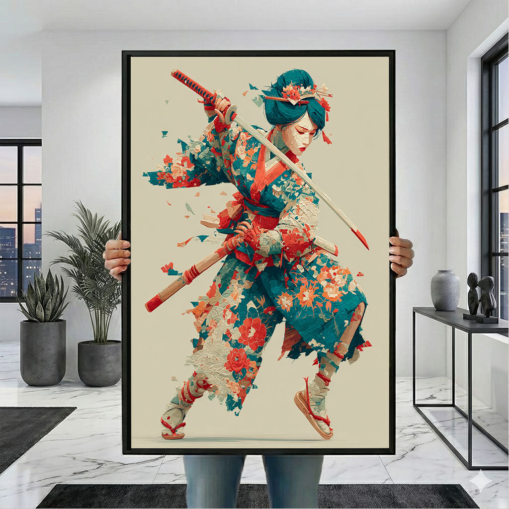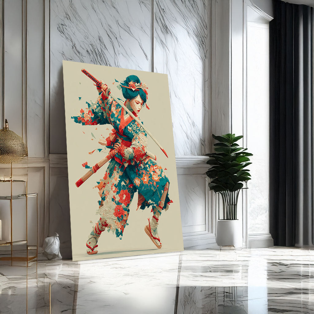 Enchanting Samurai Woman With Floral Kimono Canvas Wall Art