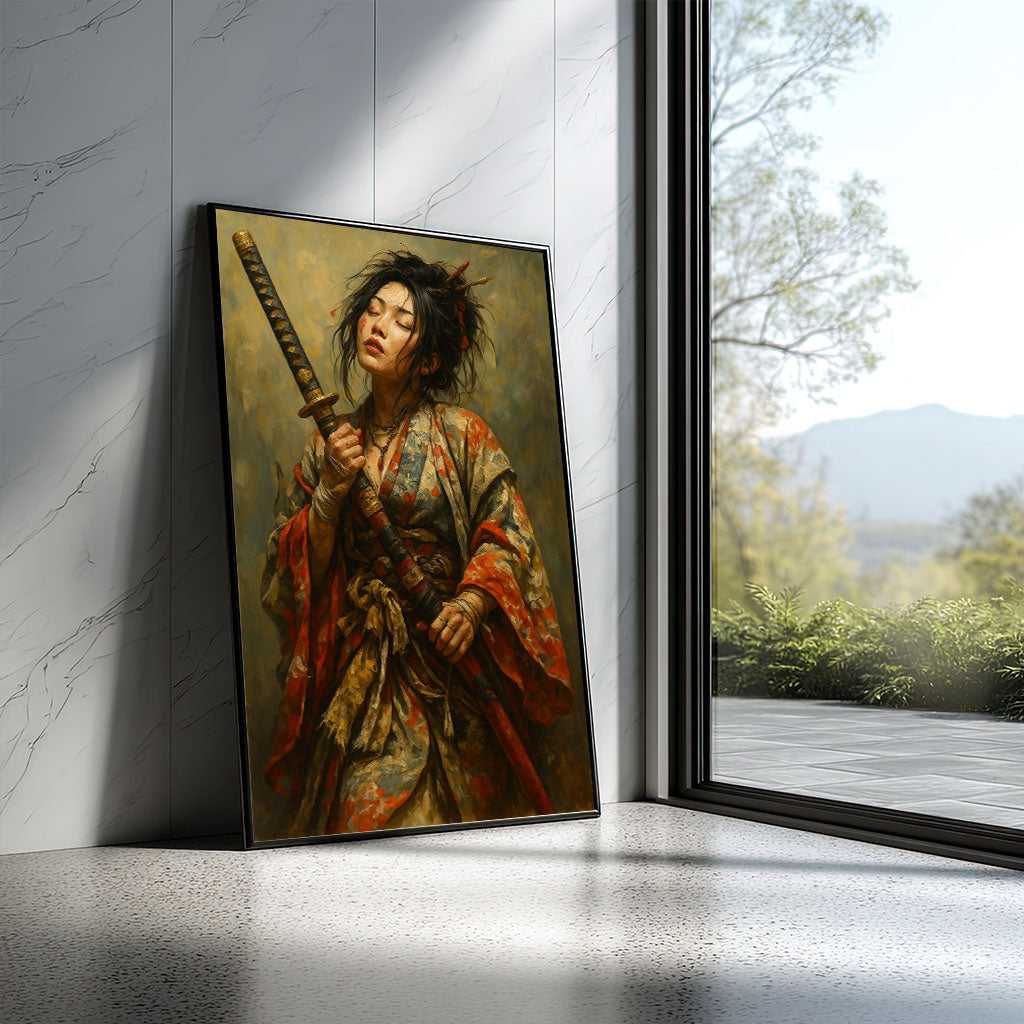 Enchanting Samurai Woman With Katana Canvas Wall Art