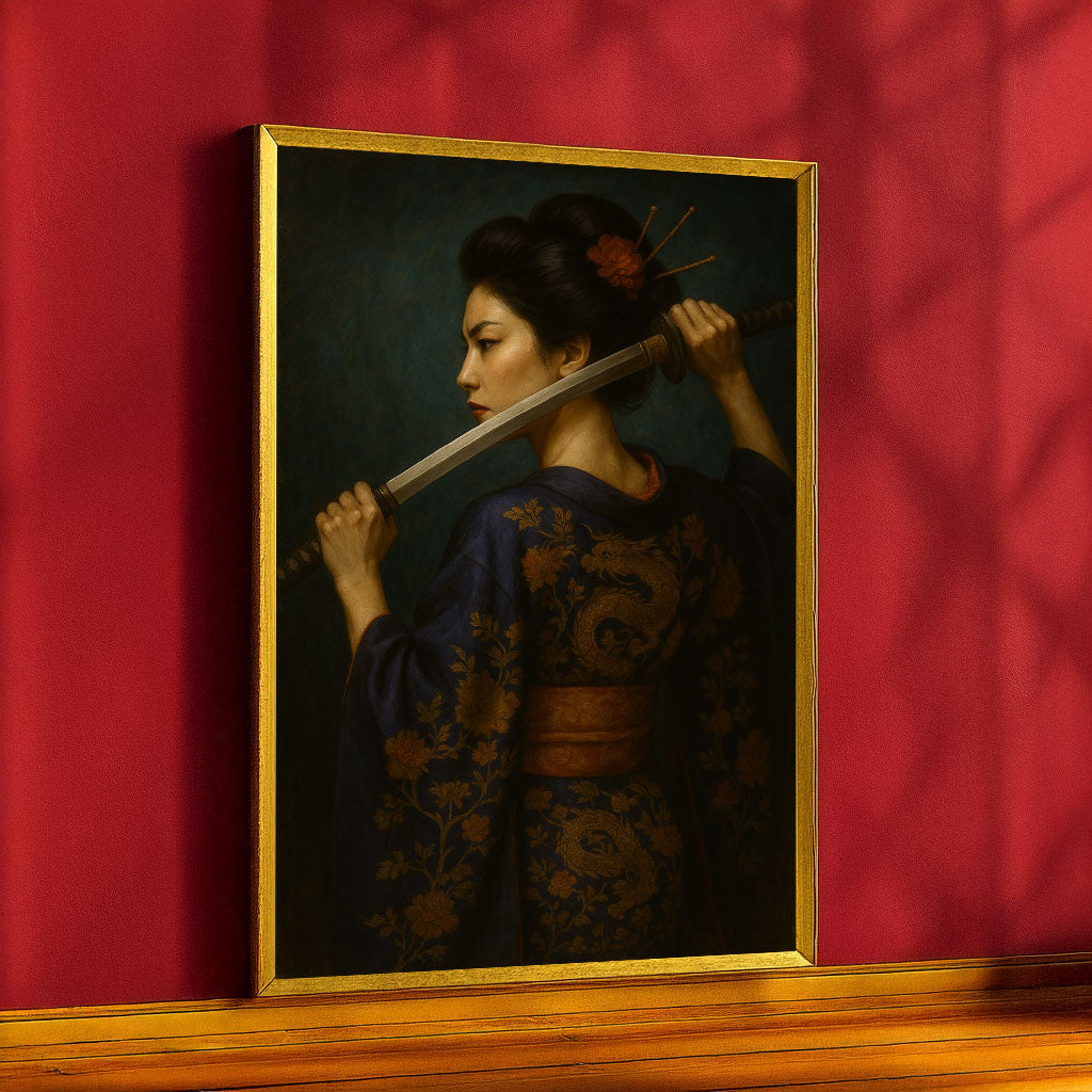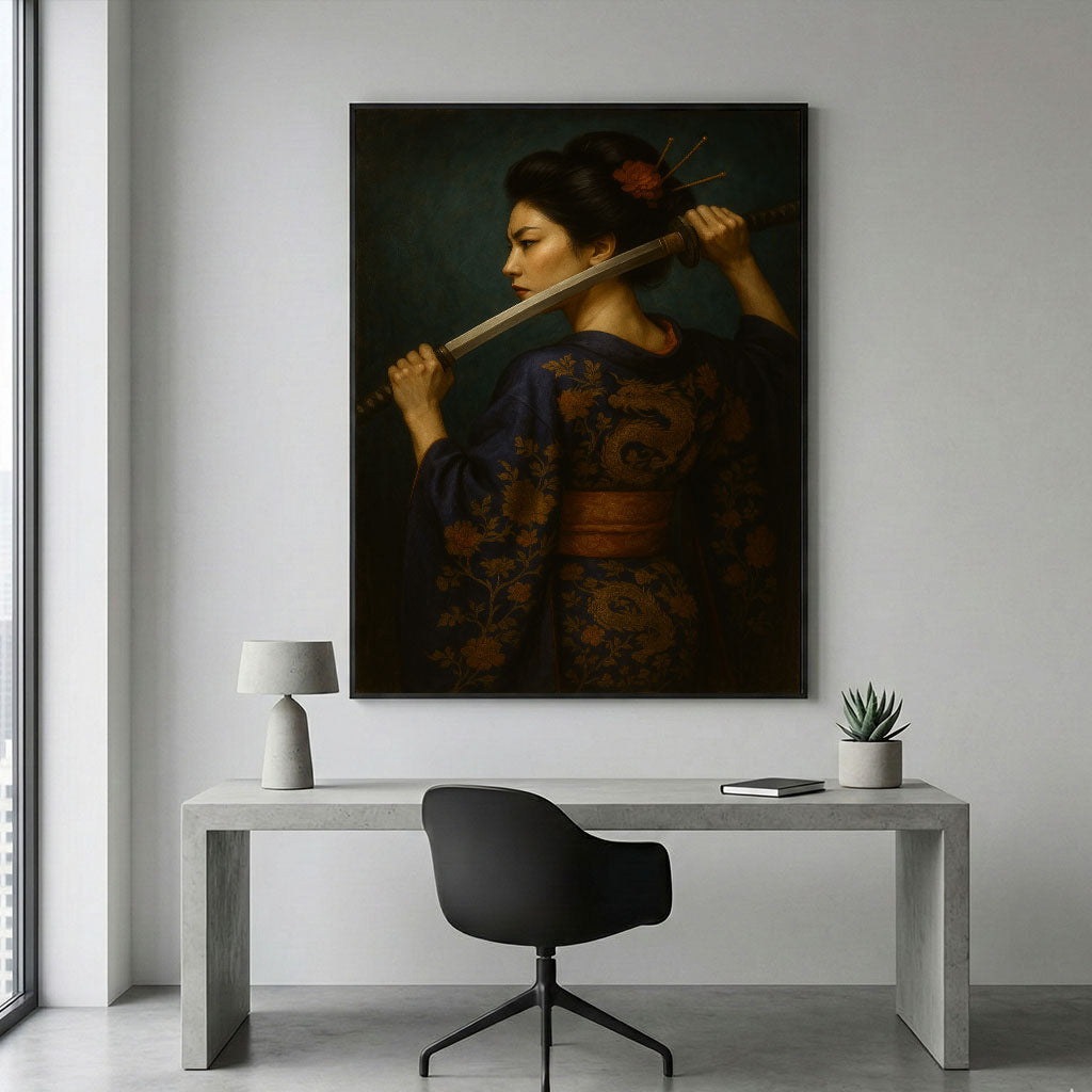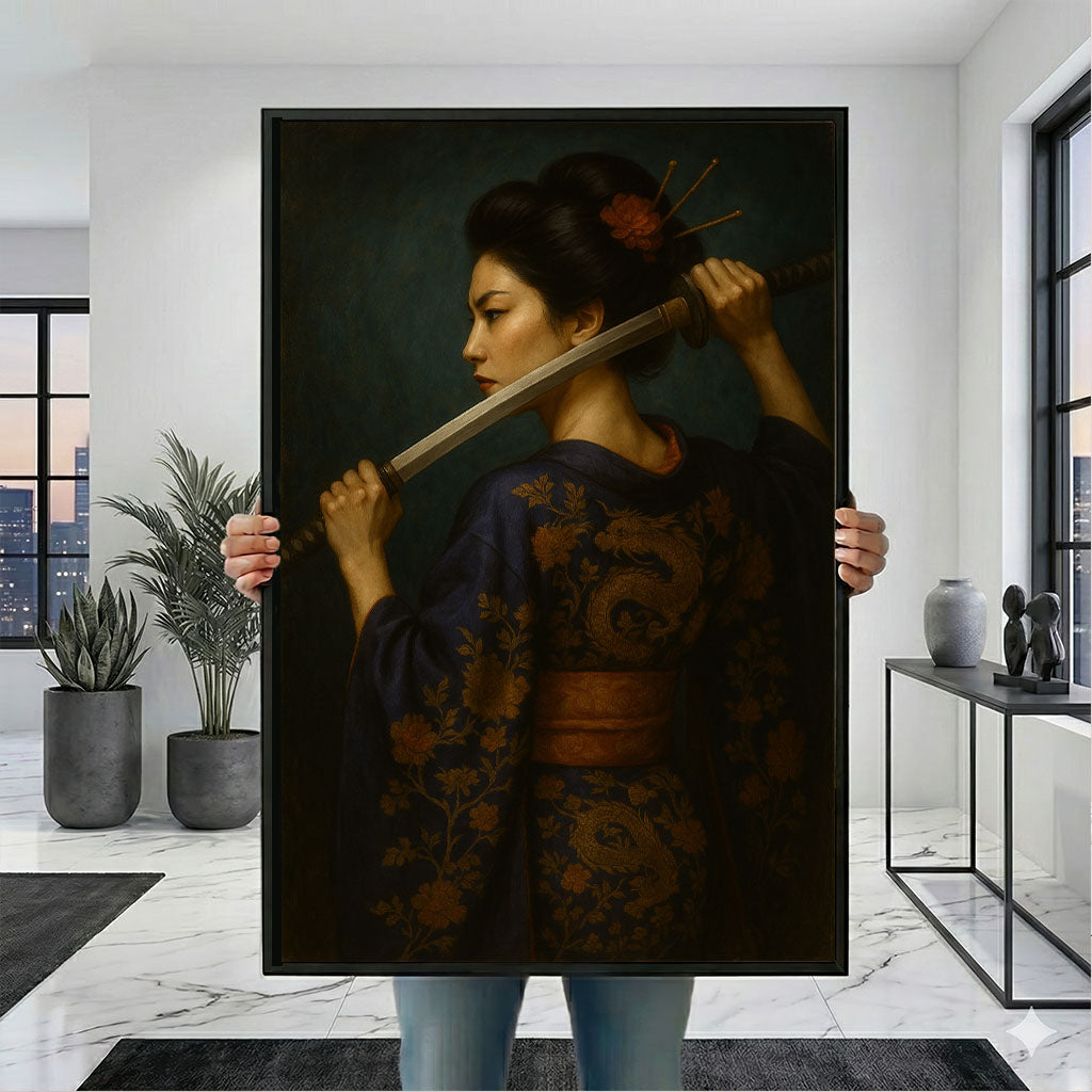 Enchanting Samurai Woman With Sword Canvas Wall Art