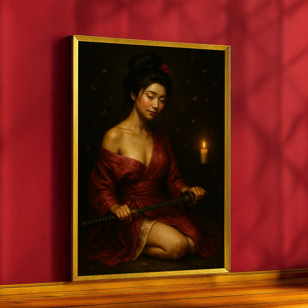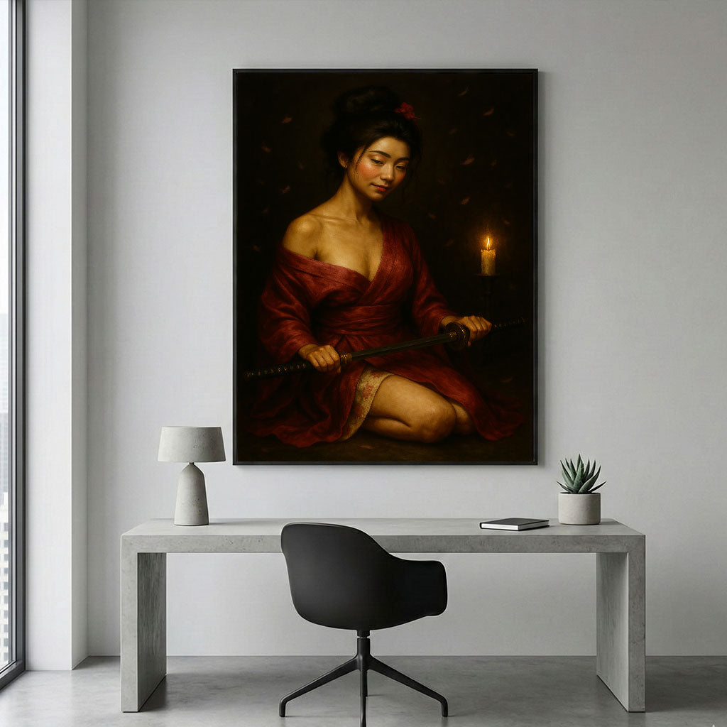 Enchanting Samurai Woman With Sword Canvas Wall Art